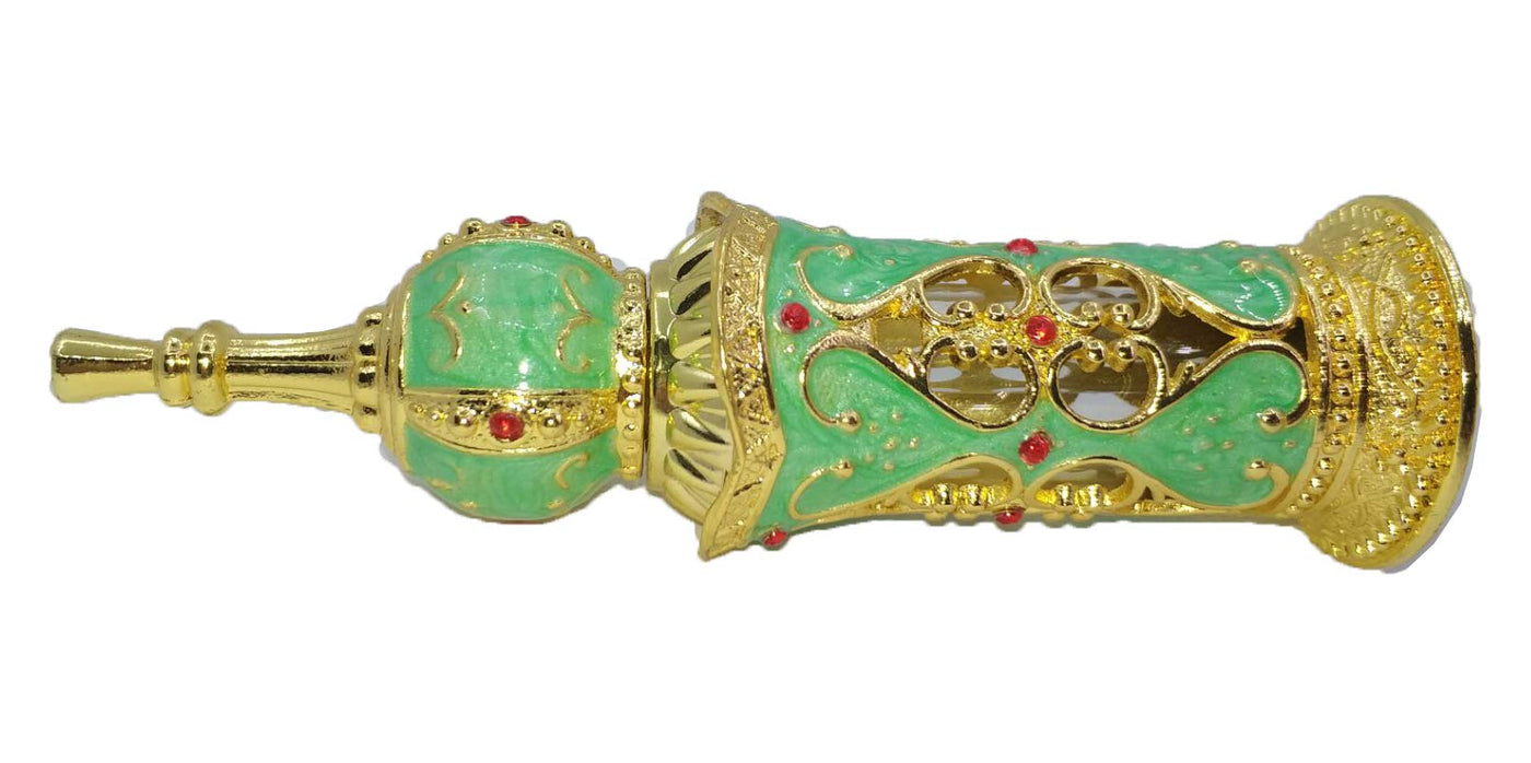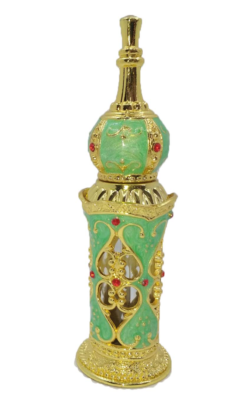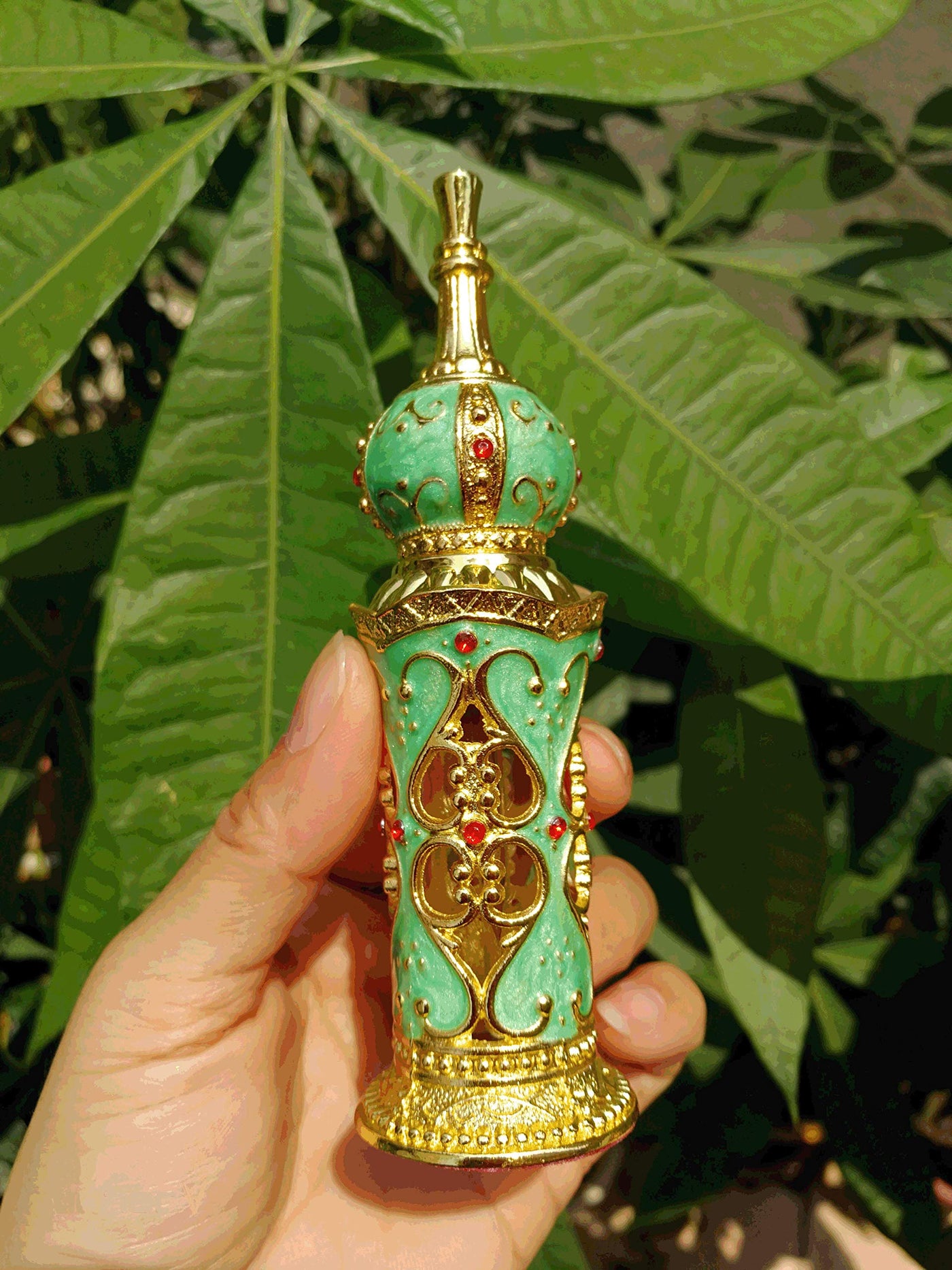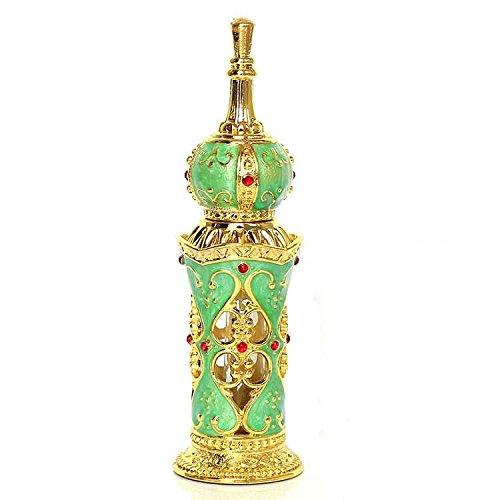 Color:Green Material: Metal & Glass & Rhinestone Surface treatment: gold plating SIZE: Height: 12CM Width: 3.5CM Weight: 95g Capacity: 12ml Color: Green Use for : perfume or essential oil Package Content: 1 x Perfume Bottle Note: Empty bottle, no essential oils or perfumes in