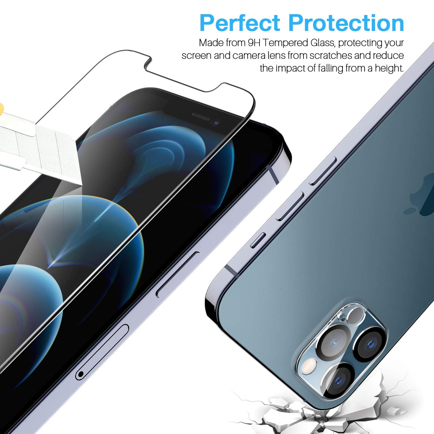 - [Case Friendly] Extra space is left around the borders for the case to wrap around the edges of your mobile without interfering with the iPhone 12 Pro Max Screen Protector & Camera Lens Protector, compatible with most cases.