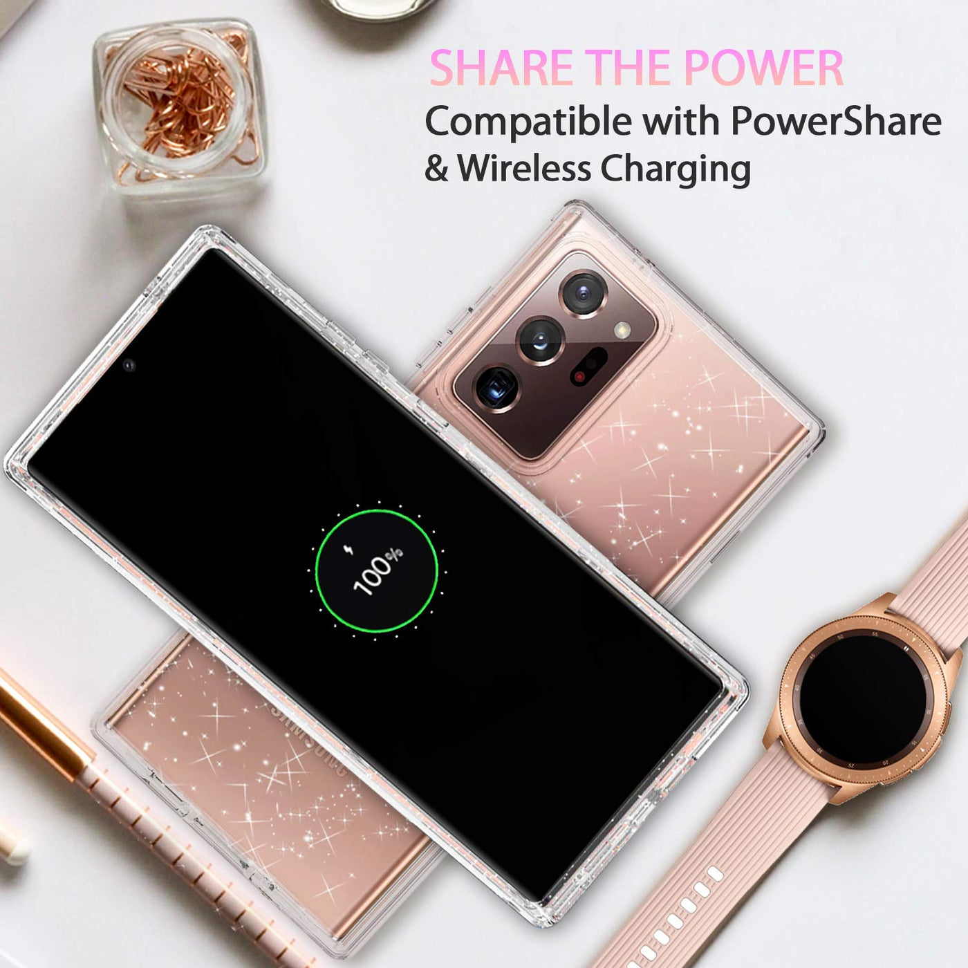 - Full body protective; front and back coverage to protect Galaxy Note 20 Ultra from drop impact shock;3 layers hybird full protection case made of plastic solid hard shell and clear transparent soft interior TPU layer with bling glitter looking