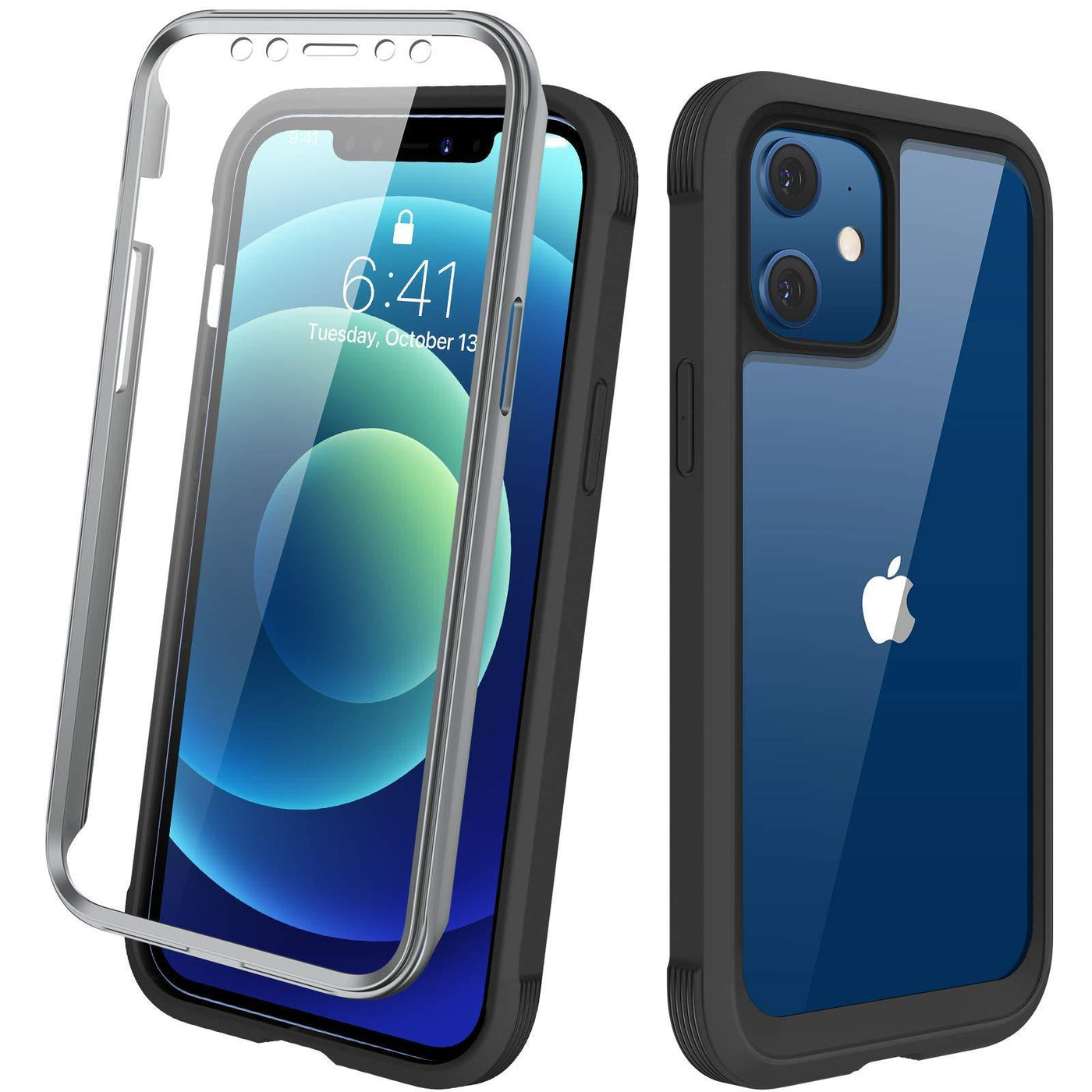 Diaclara Designed for iPhone 12/12 Pro Case, Full Body Rugged Case with Built-in Touch Sensitive Anti-Scratch Screen Protector, Soft TPU Bumper Case for iPhone 12/12 Pro 6.1" (Black and Clear)