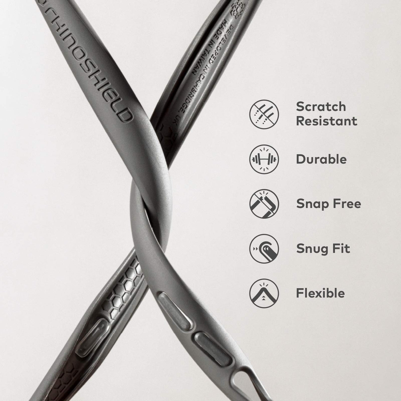 - DURABLE MATERIAL: Tough yet flexible, holds shape without loosening after bending or stretching, also scratch resistant. Strongly recommend pairing this product with the RhinoShield Impact Protection Screen Protector, just in case for the face-down falling on a pointed object or highly-uneven surface.