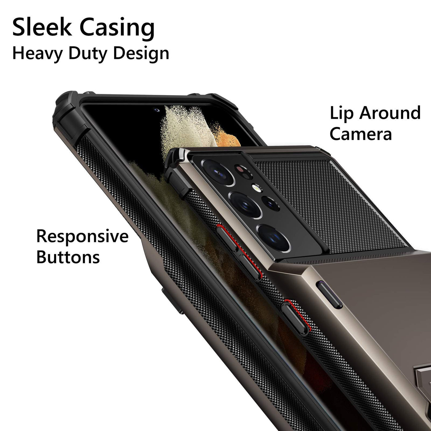 Vofolen for Galaxy S21 Ultra Case Wallet 4-Card Flip Cover Credit Card Holder Slot Back Pocket Dual Layer Protective Hybrid Hard Shell Bumper Armor Case for Samsung S21 Ultra 6.8 Gun Metal