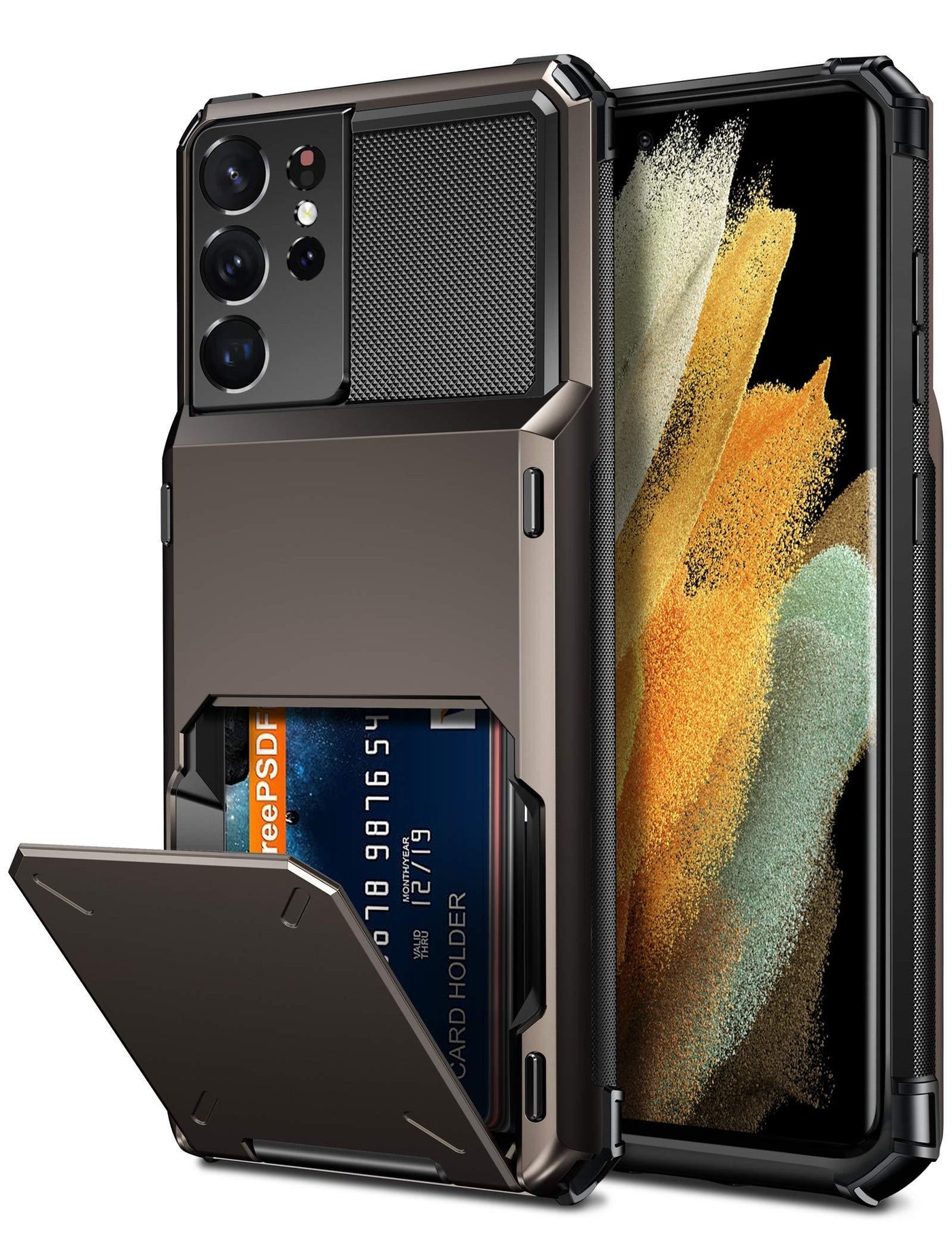 Read more Read more Vofolen Dual Layer Wallet Card Holder Case for Galaxy S21 Ultra 6.8 inch. Feature: Dual layer protection: anti- scratch PC shell + shock absorbing TPU cover. Semi-Automatic Spring-Loaded Door:Flip open the back to securely store cards and easily take them out . Hidden Card Holder:The case can hold up to 4 cards, you can carrying you ID, credit card of some cases when going out. Warm tips: 1,The Wallet Card Holder Case ONLY fit for Galaxy S21 Ultra 6.8 inch screen 2,Please buy a shatterproof screen protector to provide screen with further protection. 3,Color might seem a little different (lighter or darker) on different devices. Package 1 x Case for Galaxy S21 Ultra 6.8 inch, phone and other accessories not include. Wallet Case for Galaxy S21 Wallet Case for Galaxy S21 Plus Wallet Case for Galaxy S21 Ultra Wallet Case for Galaxy S21 Wallet Case for Galaxy S21 Plus Wallet Case for Galaxy S21 Ultra Capacity Galaxy S21 (6.2 inch) Galaxy S21 Plus (6.7 inch) Galaxy S21 Ultra (6.8 inch) Galaxy S21 (6.2 inch) Galaxy S21 Plus (6.7 inch) Galaxy S21 Ultra (6.8 inch) Features Sliding Hidden Slot, Carry 2 ID-size Cards Sliding Hidden Slot, Carry 2 ID-size Cards Sliding Hidden Slot, Carry 2 ID-size Cards Flip Hidden Slot, Carry 4 ID-size Cards Flip Hidden Slot, Carry 4 ID-size Cards Flip Hidden Slot, Carry 4 ID-size Cards Support Wireless Charging or Not Please remove the card if you need to use wireless charging Please remove the card if you need to use wireless charging Please remove the card if you need to use wireless charging Please remove the card if you need to use wireless charging Please remove the card if you need to use wireless charging Please remove the card if you need to use wireless charging