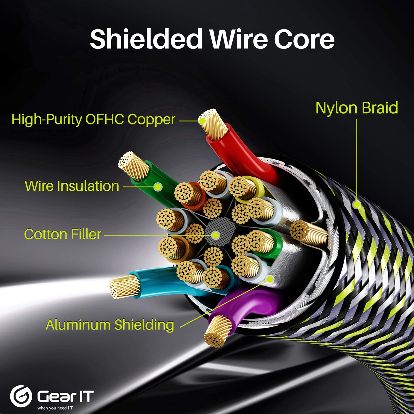 - GearIT HDMI cables come with a nylon braided jacket and a 24K gold plated connector head. They are HDMI to HDMI and male to male cords. Package includes: HDMI cables (see variation), two reusable cable ties. GearIT HDMI cords also come with lifetime warranty.