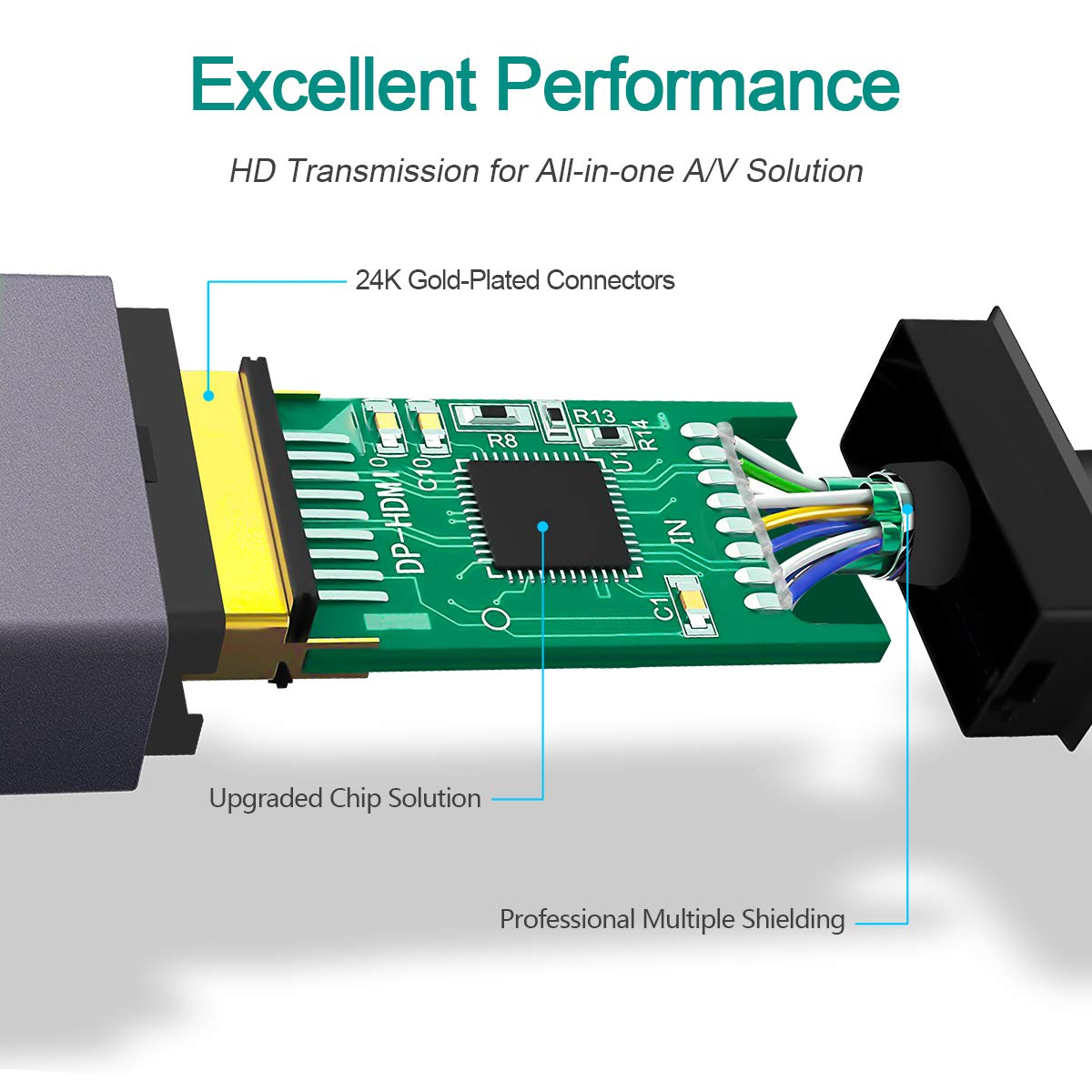 • UPSCALE DESIGN: Slim, sleek and compact. With aluminum alloy shell, unibody structure and braided nylon cable for extra durability , It's a long-lasting portable Mini DP to HDMI Cable.