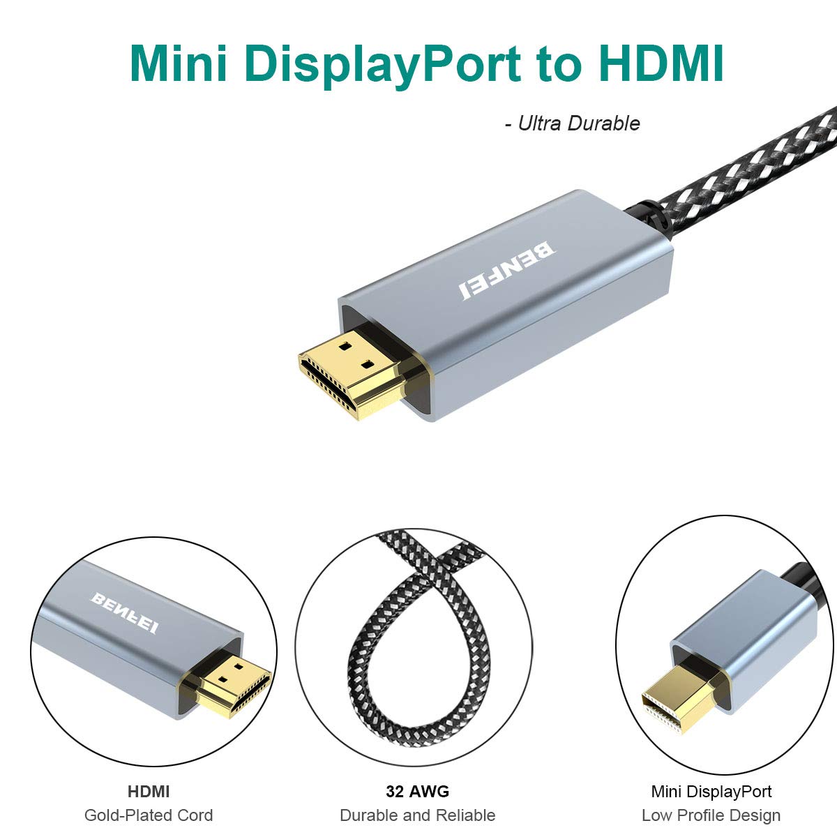 Mini DisplayPort to HDMI Cable, BENFEI Mini DP to HDMI 6 Feet Cable Compatible with MacBook Air/Pro, Microsoft Surface Pro/Dock, Monitor, Projector and More - Grey