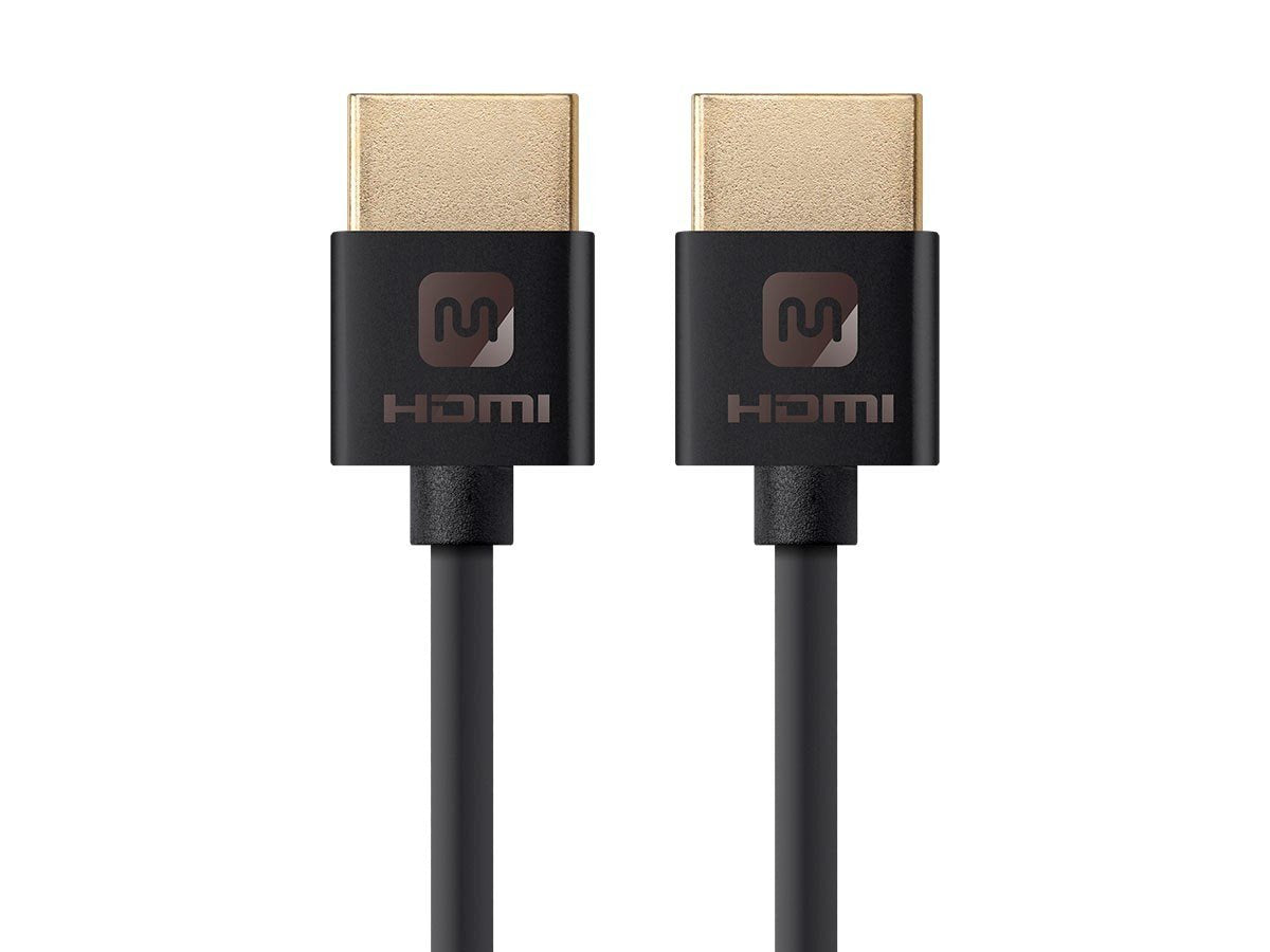 Size:6Ft | Color:Black Monoprice Ultra slim Series passive high speed HDMI cable is designed with Ultra slim TVs in mind. This cable's small form factor and Ultra slim 36AWG Cable fits perfectly in the tight spaces and low profile mounting environments today's HDTVs are made for. These short and thin cables are best at connecting multiple devices while maintaining the best HDMI signal quality for 4K and 3D support, giving you the most reliable highest resolution picture on your HDMI-enabled TV. The Ultra slim Series connects the latest HDMI-enabled sources, such as PS4, Xbox one, Blu-ray players, Applet, Roku and computers, to UHD HDTVs, a/V receivers and more. Perfect for the home theater enthusiast who wants the best, or for the installer looking to ensure the highest quality custom installation