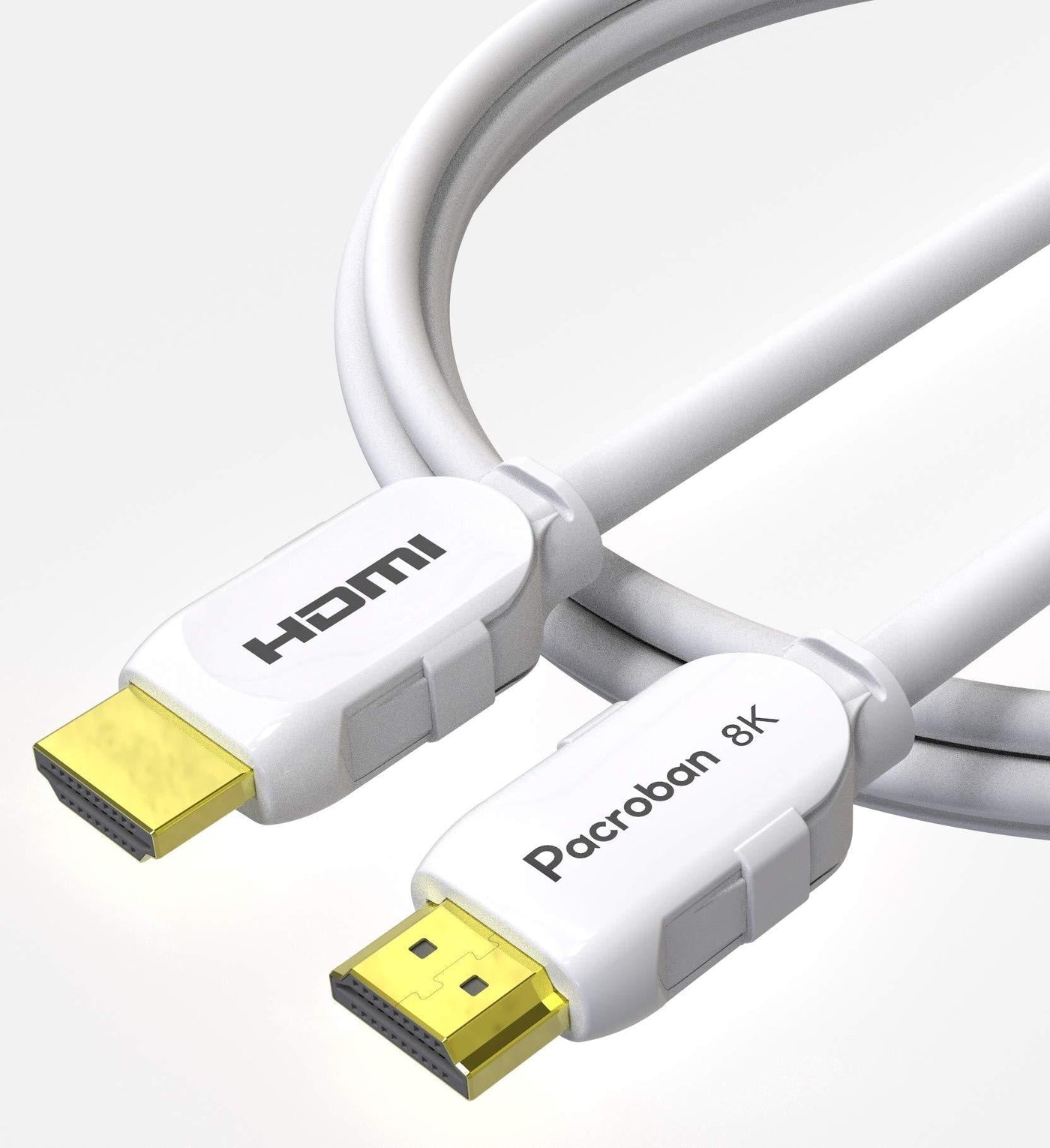 Pacroban 8K HDMI Cable (10ft) White 48Gbps, HDMI 2.1 Cable, 4K 120hz, HDCP 2.3, Dolby Vision, Dynamic HDR, CL3 in-Wall Safe