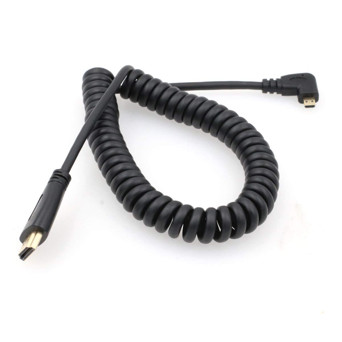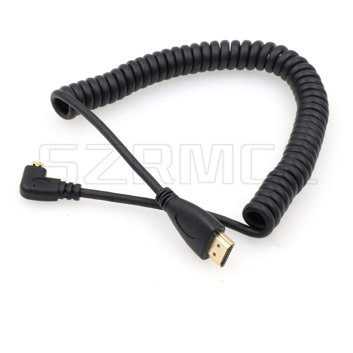 SZRMCC Right Angled Micro HDMI to HDMI High Speed Coiled Cable for Tablet Canon Sony DSLR Camera ATOMOS Monitor
