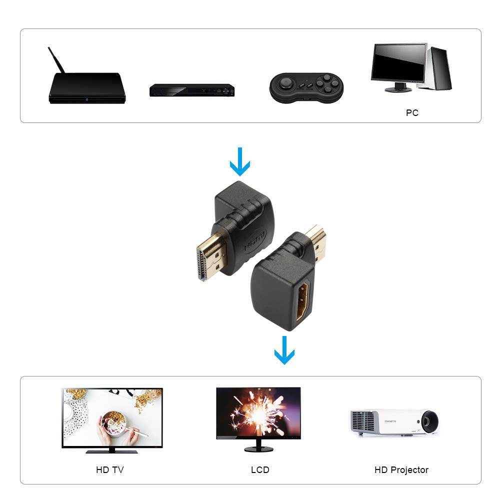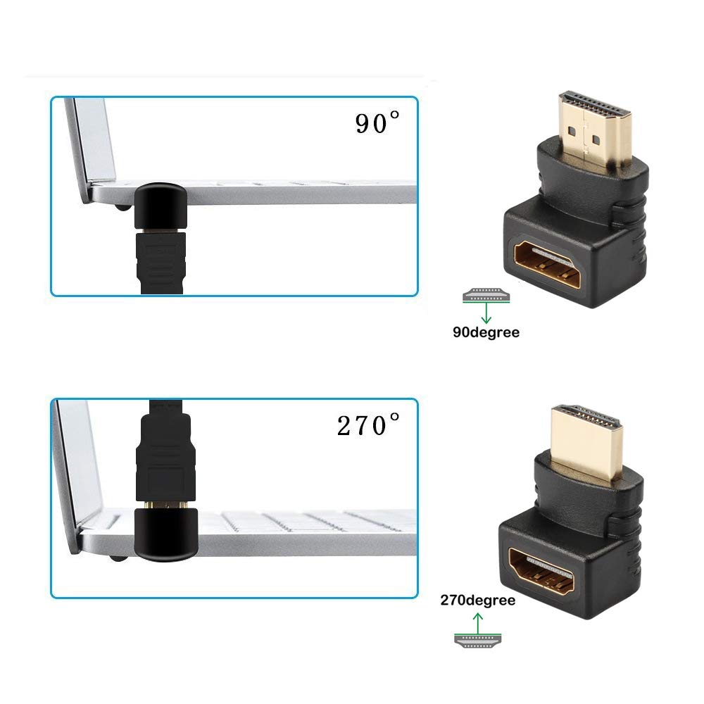 • 90 degree and 270 degree are applicable to HDMI interfaces in different directions, as you need.Gold plated connectors resist corrosion and provide rigidity.