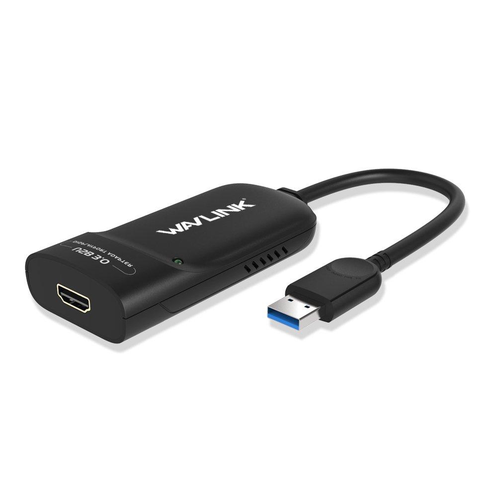 Overview: Wavlink USB 3.0 to HDMI Adapter turns an available USB 3.0 port into an HDMI output, with high resolution 4K(3840x2160) video support - a convenient external video solution that makes it easy to add multi-monitor capability to a USB 3.0-enabled desktop or laptop computer (optimal performance from USB 3.0, backward compatible with USB 2.0).Application Sharing PPT or Spreadsheet on bigger monitor or projector; Watching movies from your laptop on bigger monitor or TV. Increase productivity by running multiple applications on different screens - check your email on one display and search the web on the other.Specifications: Resolutions up to 4K(3840x2160) SuperSpeed USB 3.0 (5 Gbps) Interface Fully backwards compatible over USB 2.0 USB 3.0 bus power capable - No external power adapter required Easy to install, plug and play, hot pluggable support. 4 kind of display mode: mirror mode,expand mode,primary and secondary screen switching mode,screen mode External 2.1CH Microphone in and Earphone output make you use conveniently.System support Compatible with Windows Vista/ 7/ 8/ 8.1/ 10 or later - Mac OS X Please download the latest drive form displaylink: Requirements CPU: Quad Core 2.4GHz or Higher (i5 recommended) RAM: 4GB or higherHDMI 1.4 interfaceWhat is in the box? 1 x USB 3.0 to HDMI Display Adapter 1 x User Manual 1 x Install CDNOTE: MacOS 10.13.4 no longer supports DisplayLink. Turn off automatic updates to remain on 10.13.3.