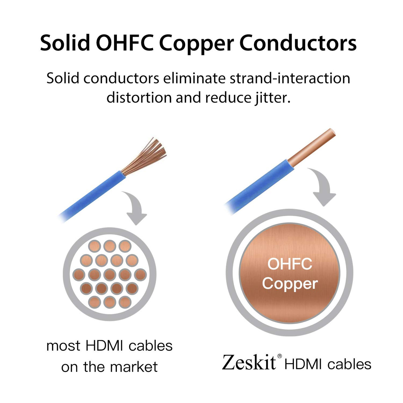 Cable length 0.5m/ 1.5ft 1m/ 3ft 1.5m /5ft 2m/ 6.5ft 3m/ 10ft 5m/ 16ft Jacket Braided Jacket Braided Jacket Braided Jacket Braided Jacket Braided Jacket No Braided Jacket CL3 rated for in-wall installation - - - - - ✓ Ultra High Speed HDMI Cable Certified ✓ ✓ ✓ ✓ ✓ ✓ Certified with UHS Sticker, covered by HDMI official All lengths of Maya series HDMI are certified and have Ultra High Speed HDMI Cable label, with scannable QR code. The models was launched Mar. 2020. And the certification program started around Nov. 2020. Before Dec. 2020, units were sold with no sticker. Since mid Dec. 2020, every unit has the sticker. If you received package with no sticker after mid Dec. 2020, please contact seller for an exchange. The Zeskit MAYA series Ultra High Speed HDMI cables comply with stringent specifications designed to ensure support for high resolution video modes such as 4Kp50/60/100/120 and 8Kp50/60 as well as new features such as eARC and VRR. The cables exceed the requirements of the latest international EMI standards to significantly reduce the probability of interference with wireless services such as Wi-Fi. They are the best way to ensure that high-bandwidth dependent features are delivered including the enhanced video and audio performance, and accounting for the new EMI characteristics. Quantity in a box: 1 cable Connector: HDMI Male to Male Cable Length: 3m / 10ft (1.5ft, 3ft, 5ft, 6.5ft, 16ft are also available separately) Bandwidth: 48Gbps Supported Features: Dynamic HDREnhanced Audio Return Channel (eARC)Auto Low Latency Mode (ALLM)Variable Refresh Rate (VRR)Quick Media Switching (QMS) Quick Frame Transport (QFT)HDR10, Dolby VisionDTS-HD Master Audio, DTS:X, Dolby TrueHD, Dolby AtmosHDCP 2.2 & 2.3EthernetARCCEC For all HDMI 1.4, 2.0, 2.1 devices TV or Projector: Sony Samsung LG TCL Vizio B&O JVC ... Receiver: Yamaha Denon Onkyo Marantz ... Player: Sony Samsung LG Blu-ray player, Apple TV, Amazon Fire TV, Roku PS4 PS5 Xbox AMD Radeon Nvidia RTX Geforece Shield ... Compatible with latest HDMI 2.1 devices (not full list): LG CX C9 B9Sony X900H Z8HSamsung Q80T Q90TNvidia RTX 3080/3090PS5Xbox Series X Dolby, Dolby Atmos, Dolby Vision and the double-D symbol are trademarks of Dolby Laboratories. | DTS:X and the DTS:X logo are registered trademarks and/or trademarks of DTS, Inc. in the United States and/or other countries. 8K Ready The most recent update of the HDMI specification supports a range of higher video resolutions and refresh rates including 8K60 and 4K120, and resolutions up to 10K. Dynamic HDR formats are also supported, and bandwidth capability is increased up to 48Gbps. Zeskit Ultra HD High Speed HDMI Cable support the 48Gbps bandwidth and is backwards compatible and can be used with the existing installed base of HDMI devices. 48Gbps Bandwidth The cable ensures high-bandwidth dependent features are delivered including uncompressed 8K video with HDR, supporting the 48Gbps bandwidth. Other popular supported features are Dolby Vision, Dolby Atmos, HDCP 2.2 & 2.3, DTS:X, eARC. For future proof, this cable also supports Dynamic HDR, VRR, ALLM, QFT, QMS, features of next generation of HDMI. Approved Category 3 Connector (Standard HDMI) Zeskit Ultra HD High Speed HDMI cable uses Approved Category 3 Connector, which was tested at an Authorized Testing Center (“ATC”). This is a must for any device compliant with the latest HDMI standard. Read more Ultra HD High Speed Cable It features exceptionally low EMI (electro-magnetic interference) which reduces interference with nearby wireless devices. Ultra High Speed HDMI Cable Label Certified by HDMI Licensing and Adminstration. Scan hologram through HDMI Cable Certification app to verify your cable. Read more LITE Ultra High Speed HDMI Cable Cinema Plus High Speed HDMI Cable LITE High Speed HDMI Cable HDMI Extension Cable HDMI Adapter MAYA 8K DisplayPort Cable Connectors HDMI Male to Male HDMI Male to Male HDMI Male to Male HDMI Male to Female HDMI Male to Female DisplayPort Male to Male Size/Shape 3ft, 5ft 1.5ft, 3ft, 6ft, 6.5ft, 10ft 3ft, 5ft 1.5ft, 3ft, 6.5ft, 10ft Right Angle (4 direction choices) 3ft, 6.5ft, 10ft, 16ft Features 48Gbps, 8K@60Hz, 4K@120Hz, Dynamic HDR, eARC, ALLM, VRR, QFT, QMS 4K@60Hz, HDR, Dolby Vision, HDCP 2.2, ARC Premium HDMI Cable Certified, 4K@60Hz, HDR, Dolby Vision, HDCP 2.2, ARC 4K@60Hz, HDR, Dolby Vision, HDCP 2.2, ARC Zinc Alloy Full Shielding, 24K Gold Plated Plugs, HDMI 2.1 Ready, 8K, 4K@60Hz, HDR, Dolby Vision, HDCP 2.2 DP 1.4,VESA certified, HBR3, 32.4Gbps, 8K@60Hz, 4K@120Hz, 1440P@240Hz with 30bit/px RGB, HDR10, DisplayHDR