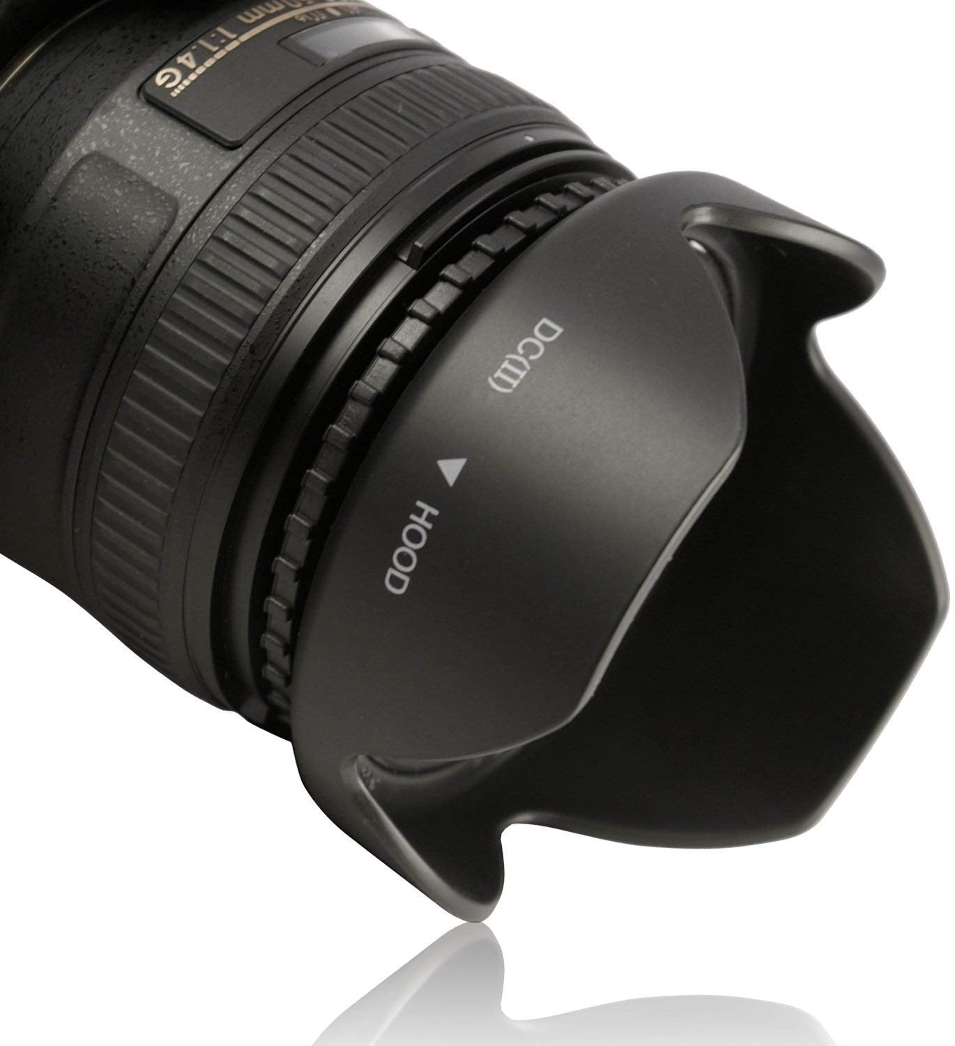 The addition of a lens hood can help prevent flares-those circles of light that can accompany images where a strong light source is just outside the frame. Professional tulip shape design (also known as 'flower' or 'petal' shape) allows for greater versatility. Perfect for standard or zoom lenses. Easy to use screw mount lens hood screws right onto your lens or filter. Features a rear locking ring to allow user to rotate the hood in either direction and capture the exact amount of shading desired. Lens hoods also have the added benefit of providing extra protection to your lens from accidental bumps or scratches. Lens hood is compatible with the all lenses that have a 58mm thread