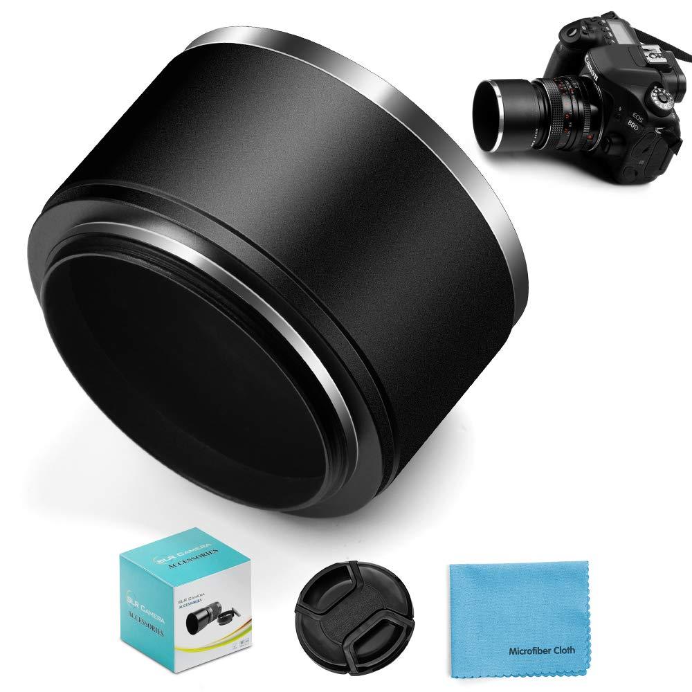 58mm Tele Metal Screw-in Lens Hood Sunshade with Centre Pinch Lens Cap for Canon Nikon Sony Pentax Olympus Fuji Sumsung Leica Standard Thread Lens +Cleaning Cloth