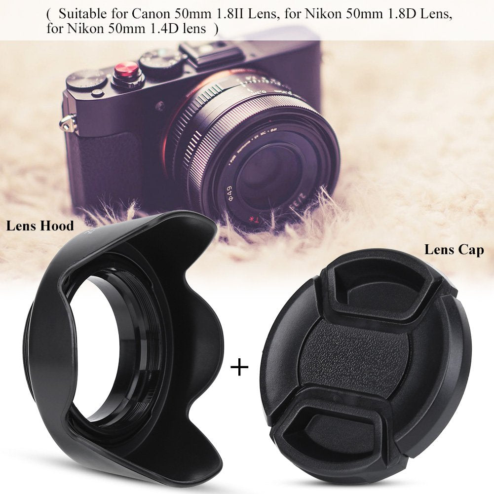 - CompatibilitiesSuitable for Canon 50mm 1.8II lens, for Nikon 50mm 1.8D lens, for Nikon 50mm 1.4D lens and other lenses whose caliber is 52mm.