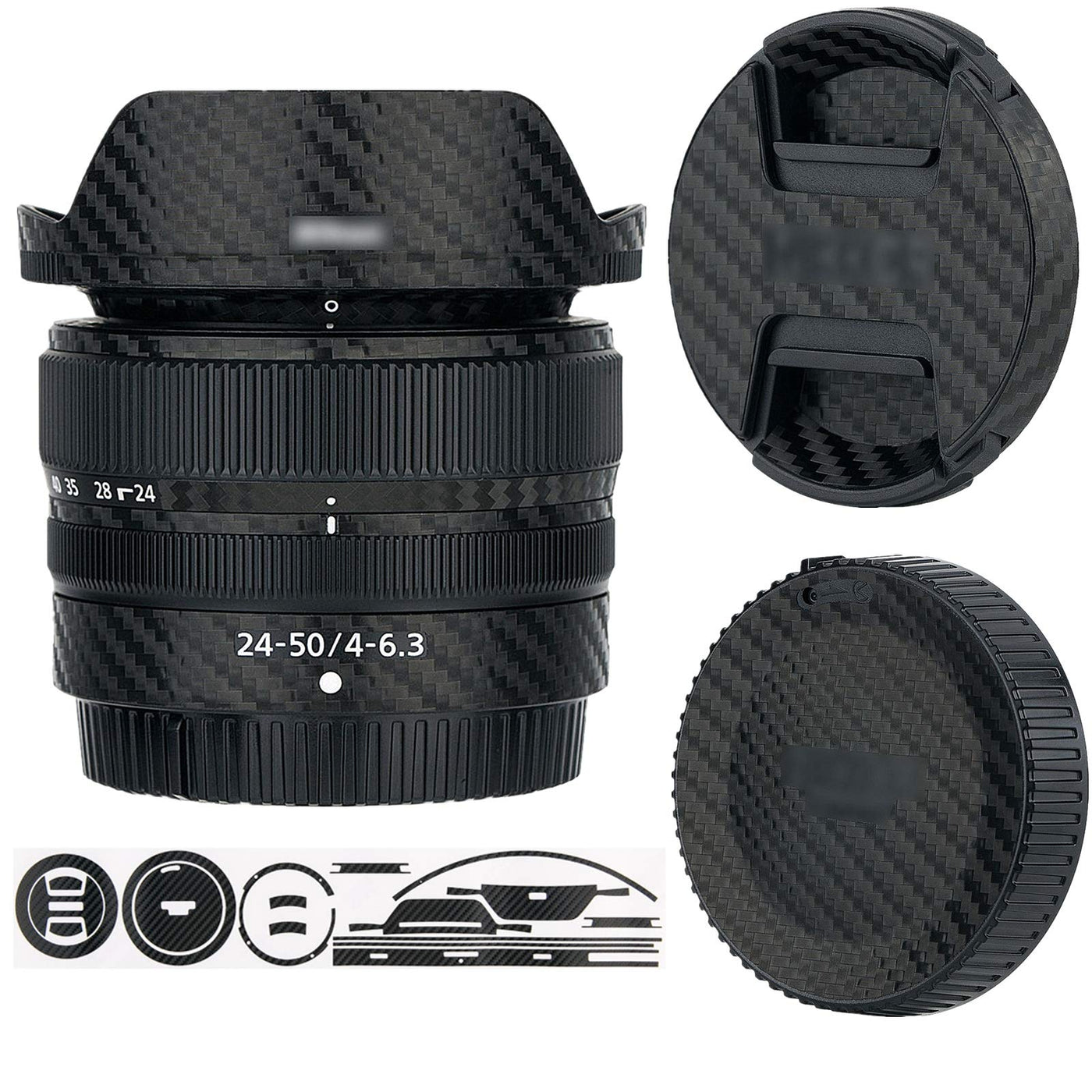 Anti-Scratch Anti-Wear Cover Skin Protector Wrap Kit for Nikon Nikkor Z 25-50mm F4-6.3 Lens Body Front Cap Rear Cap and for HB-98 Lens Hood - Carbon Fiber Pattern Sticker Film