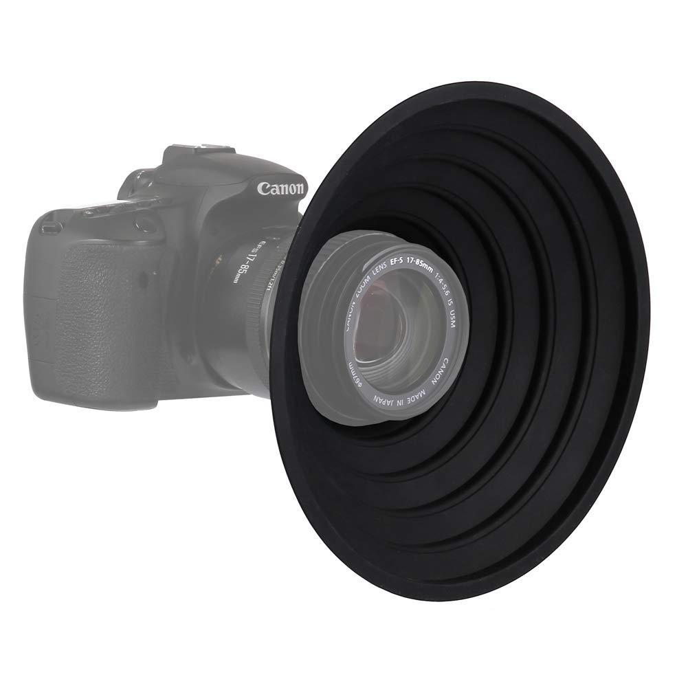 • SIZE - Ultimate lens hood made of silicone and will stretch fit to any lens with 70mm-90mm diameter.