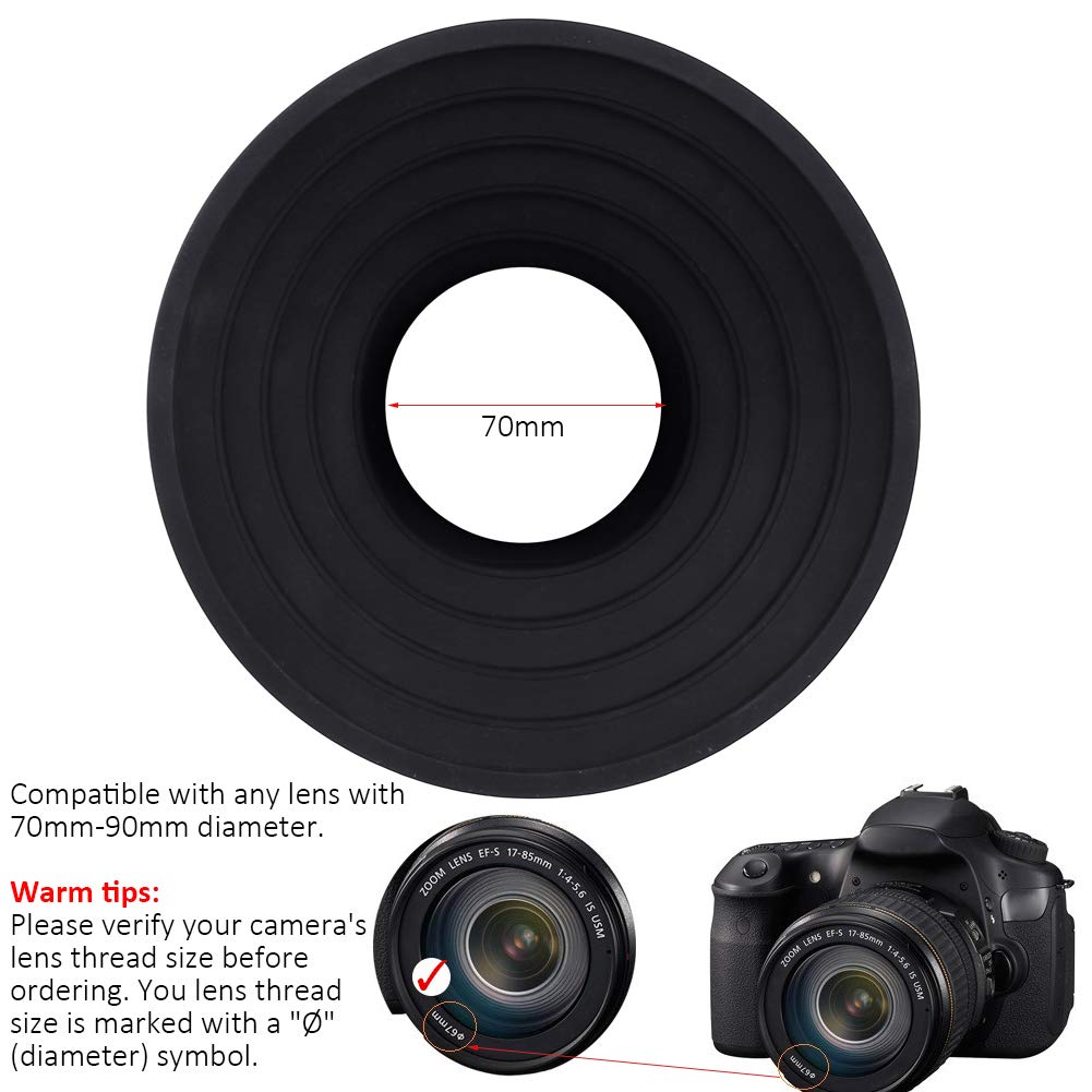 Easy Hood Lens Hood for Nikon Canon Pentax Sony 70-90mm Camera Lens, Ultimate Anti-Glass Anti-Reflective Silicone Collapsible Len Hood Take Reflection-Free Photos Video (70mm)