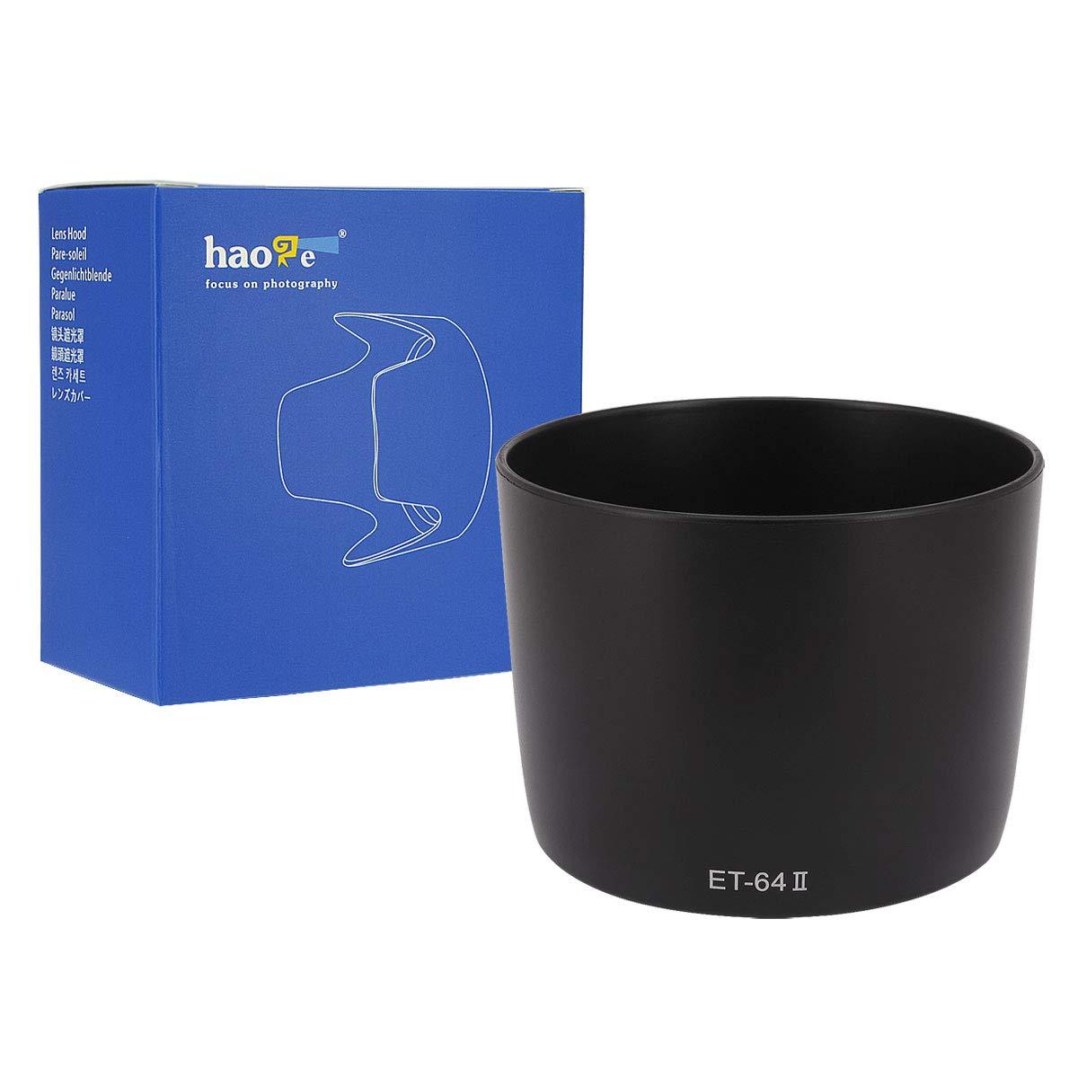 The Haoge Lens Hood is primarily designed to prevent unwanted stray light from entering the lens by extending and shading the end of the lens, plus prevent vignetting. In addition, since the end of the lens is extended, you also get the added benefit of some extra protection from accidental impact. Specification: Bayonet mount design Material: Plastic Color: Black as Photo Replaces Canon ET-64 II Compatible with: Canon EF 75-300mm f/4-5.6 IS USM NOTE: Only compatible with the lens list above. Please verify your lens model before order. Package Included: 1 x Haoge Lens Hood ( Note: it can't be used for other Canon EF 75-300mm f/4-5.6 lens not list above )