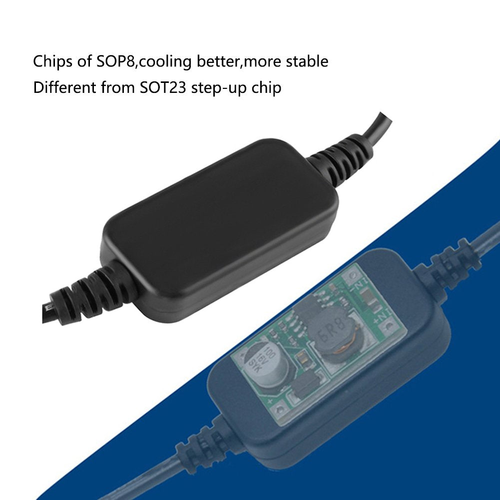 - Use for items below 8W.USB Input:5V 2A .Output:12V 8W Max. item Length 120 cm(47.24inches)