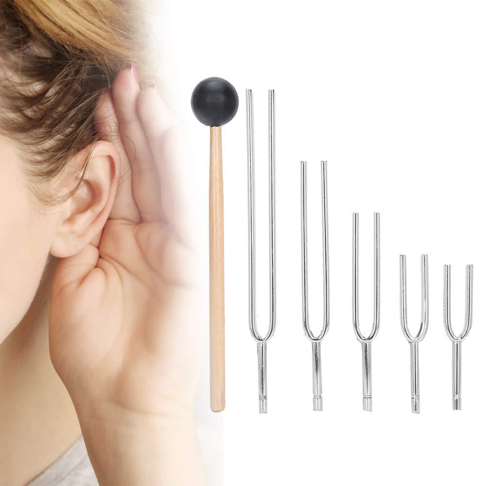 Brrnoo Tuning Fork Set, 5PCS 128HZ+256HZ+512HZ+1024HZ+2048HZ Medical Tuning Fork Hearing Test Aluminum Alloy Tuning Energy Fork With Hammer Tap