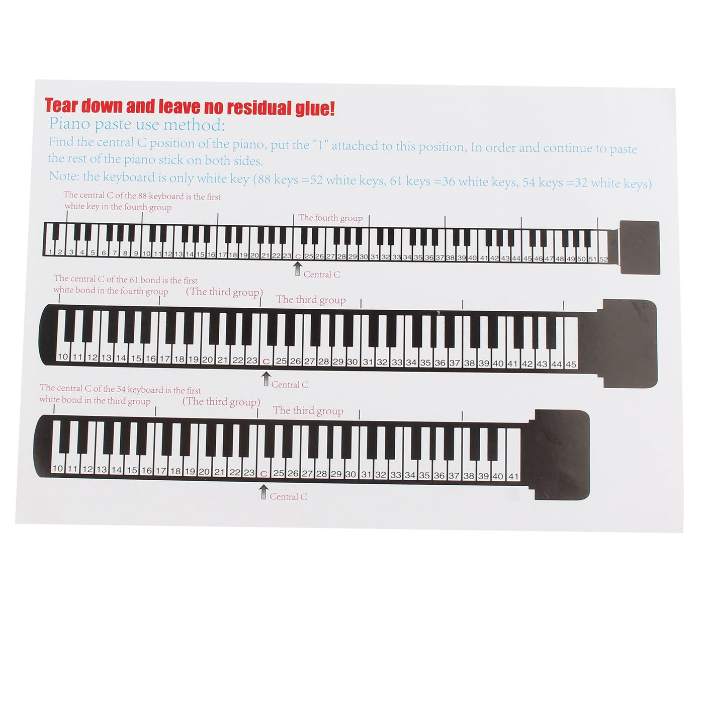 Description Removable ULTRA THIN AND ULTRA STRONG Laminated Polypropylene stickers to protect the print against household chemicals. Fun stickers to help anyone learn to play a piano or keyboard. Comes with an instructions and application stick to help you install them within minutes. Non-residue removable adhesive means that the stickers can be easily repositioned, and removed without a trace. Accelerate and simplify your keyboard and/or piano learning skill. Suitable for Footsteps electronic keyboard, 54/61/88keys can be used. Package Including 1 set Keyboard sticker