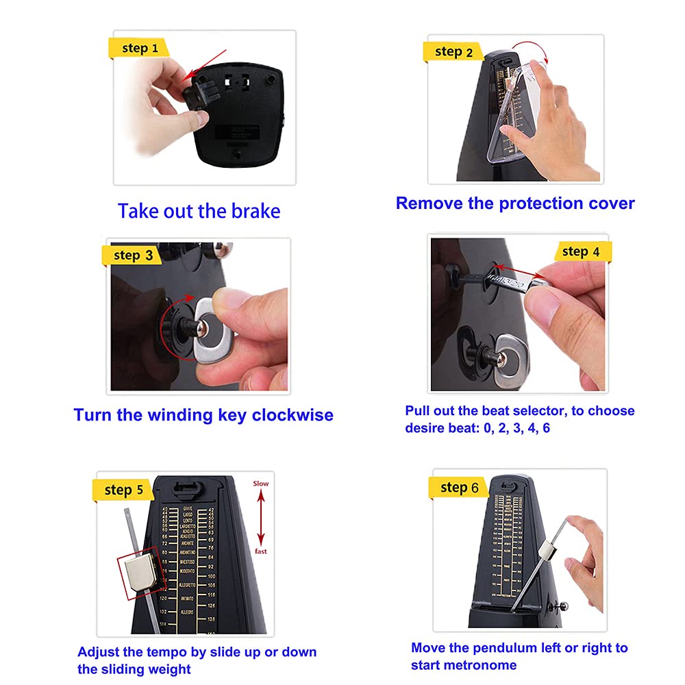 - Easy to Use: Remove the protection cover, select your desired beat and tempo, wind it up, and then set the pendulum in motion.