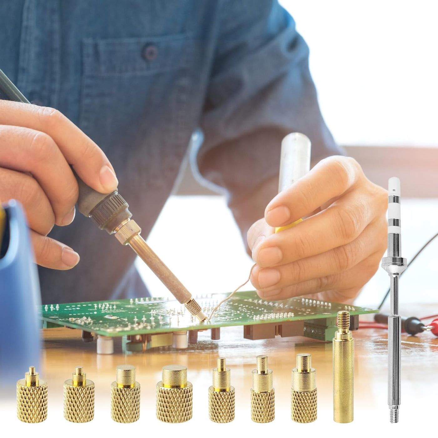 7-Piece Soldering Tips and Melting Thread Set, M2 / M2.5 / M3 / M4 / M5 / M6 / M8, Brass, with Adapter, for TS100/TS101 Soldering Tips, Interchangeable with Standard 936 Universal Tips (Yellow)