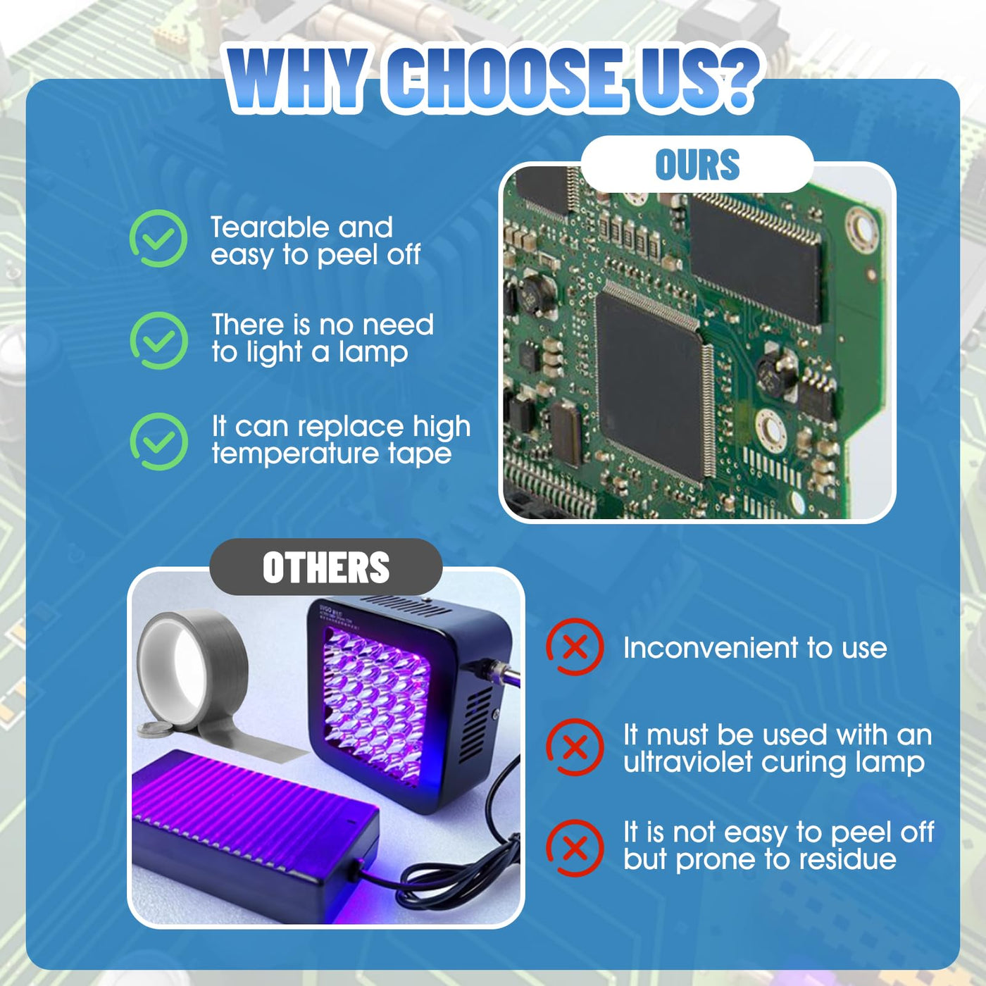 - Easy to tear off and clean: say goodbye to conventional high temperature adhesive tape! The pink solder stop mask can be easily removed after curing. After welding, no adhesive residue or scratches are left behind. The solder joints of the board are as smooth as new, which saves time, effort and worries _x000d_