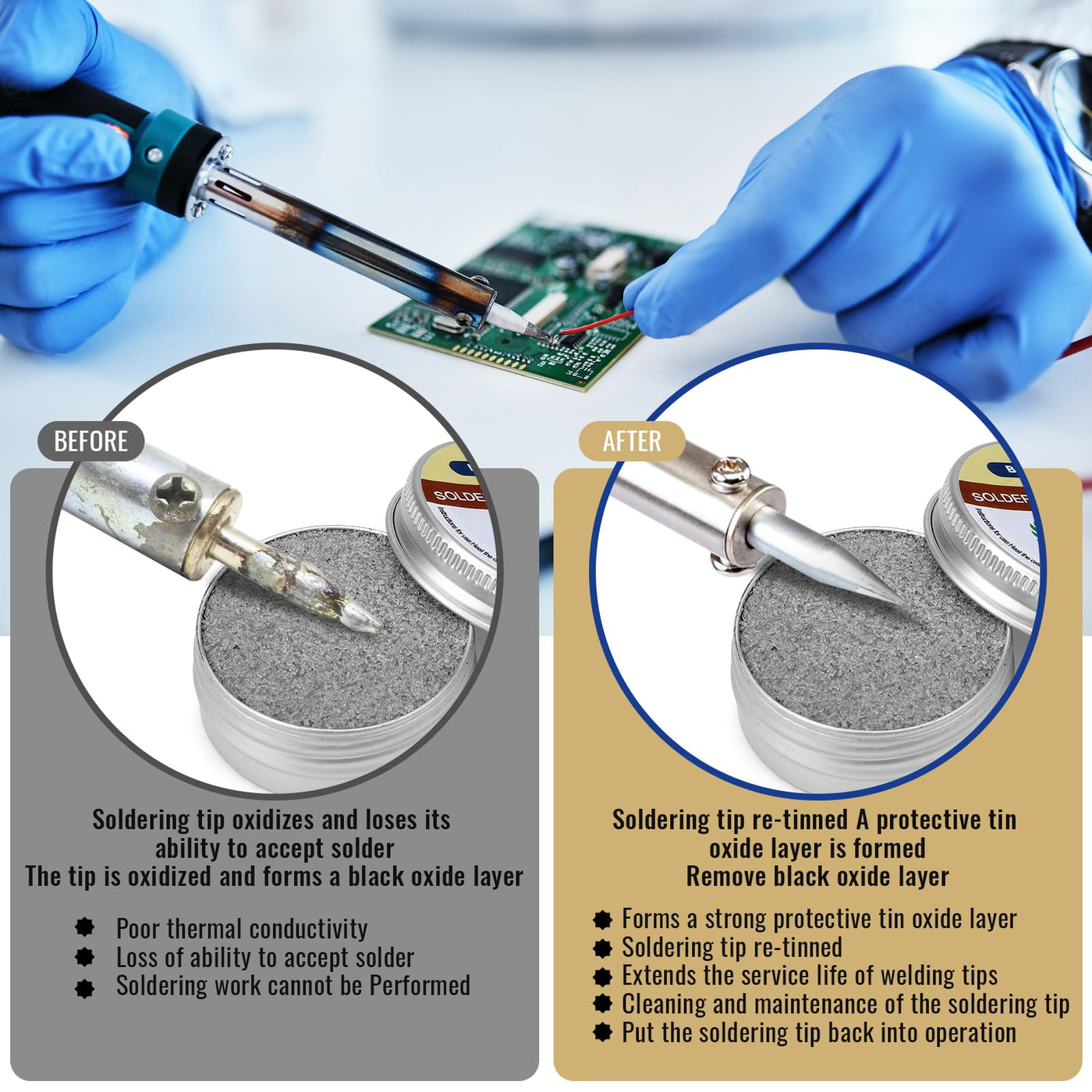 • Product specifications: you will receive a lead-free soldering tip reactivator with a capacity of 30 grams. With the dimensions 40 mm x 18 mm. The soldering tip cleaner is small, easy to carry and use in your daily life.