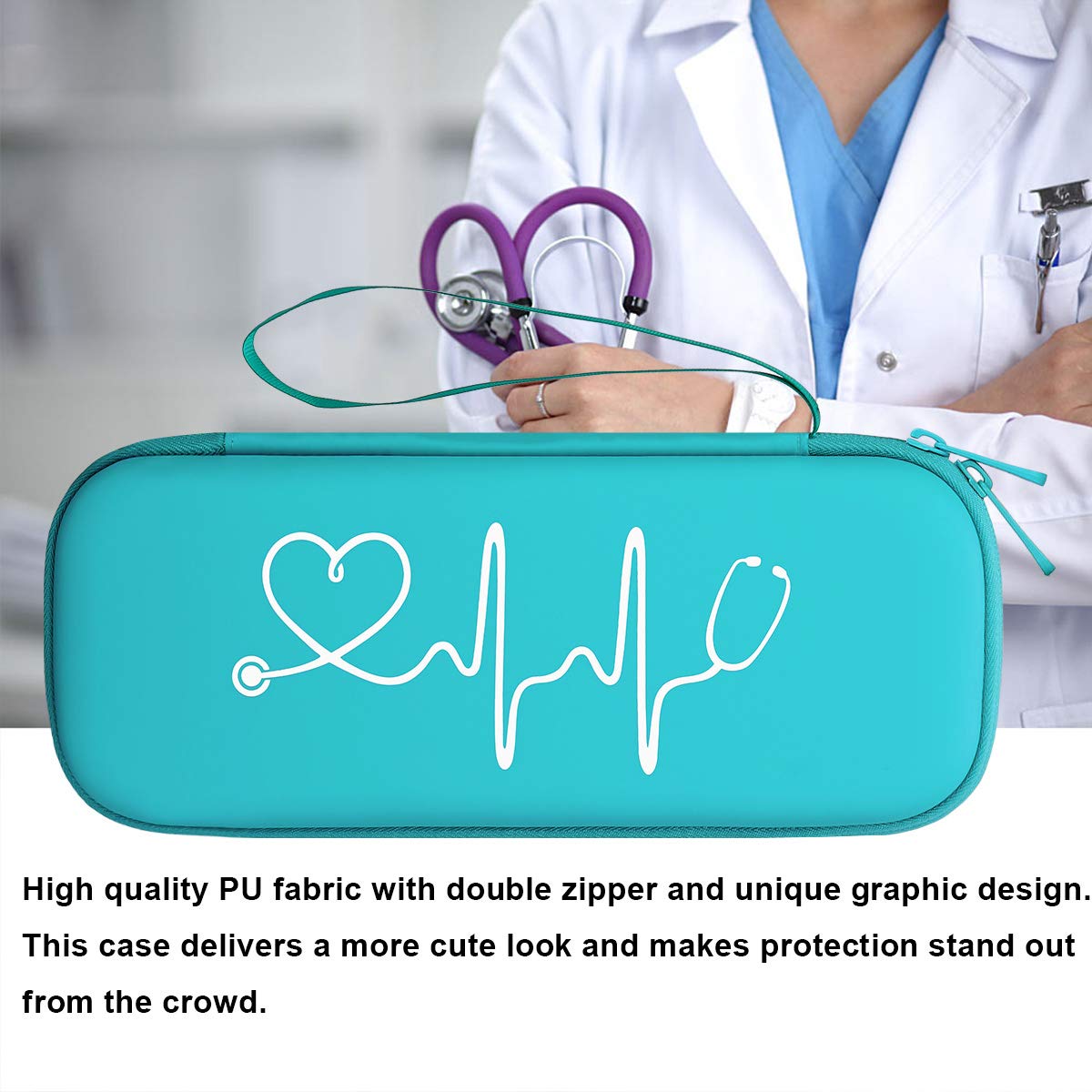 - This stethoscope holder is Semi Waterproof, shockproof, Stylish and Durable. Guaranteed to prevent any damage to your Stethoscopes. Double zipper design provides easy access to insert and remove your stethoscope and nurse accessories for work. _x000d_