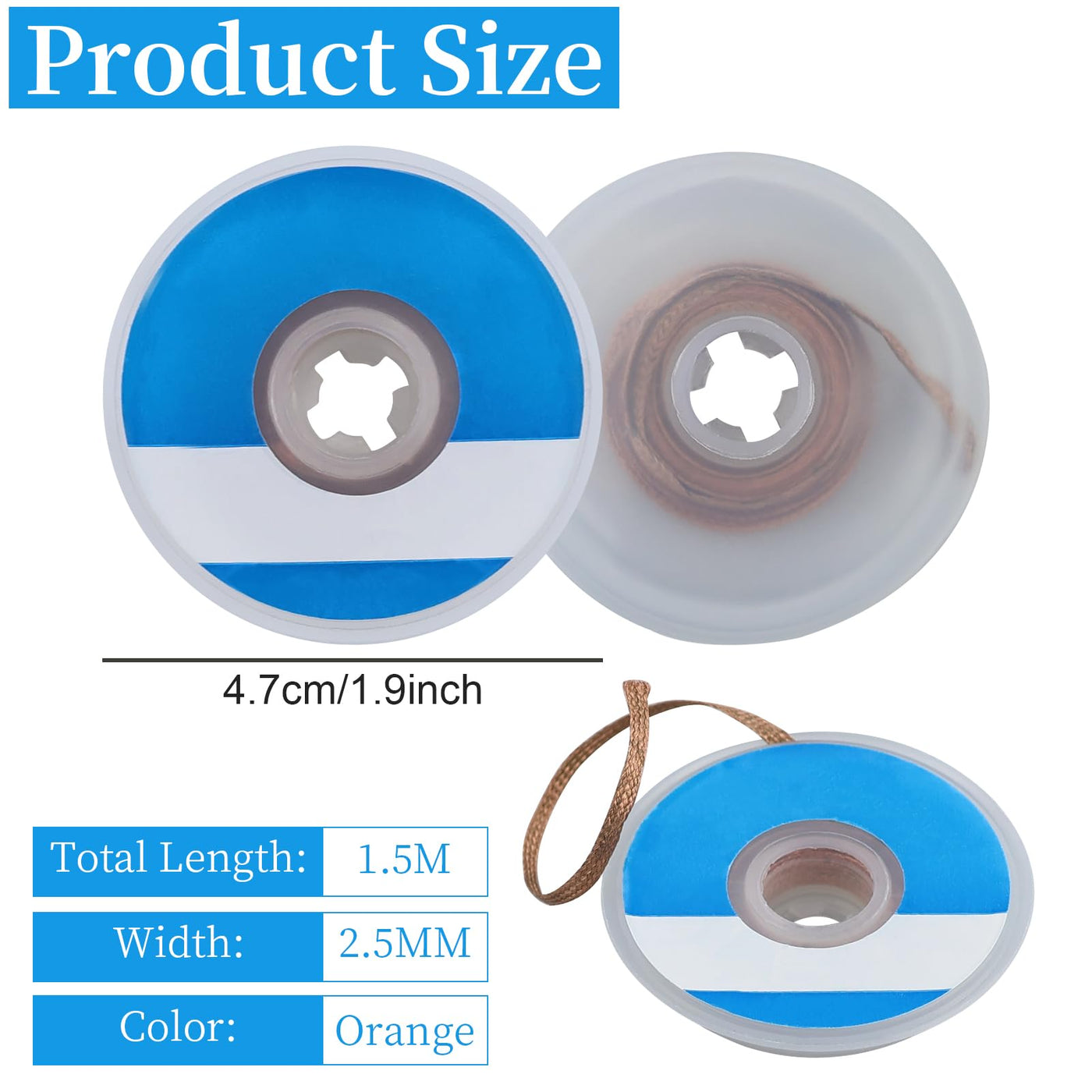 - What you get: you will receive 1 roll of desoldering wire, about 1.5 meters long and 2.5 mm in diameter. Less residue, strong adsorption, suitable for precision instruments, electronic instruments, etc., which makes your daily life more convenient. _x000d_