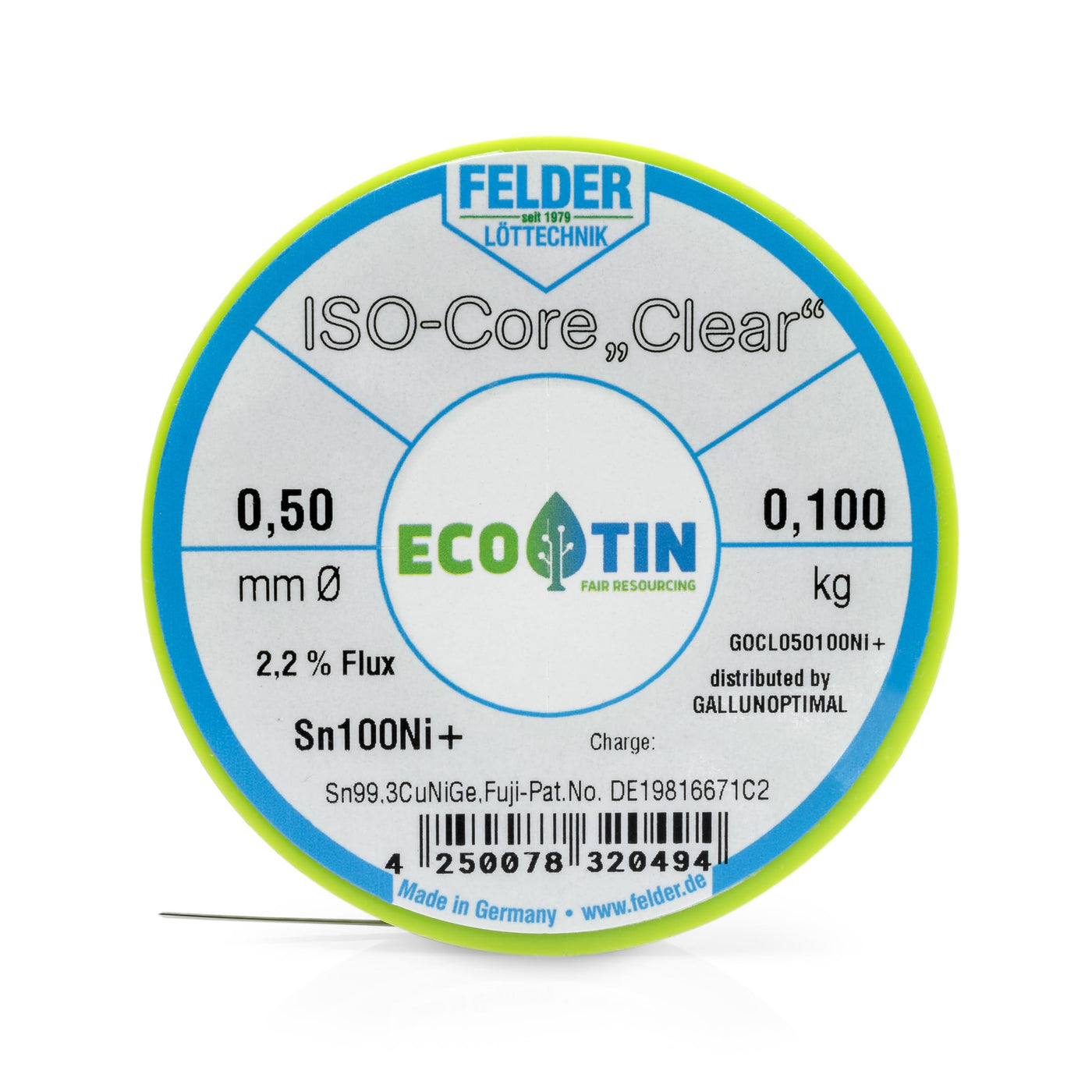 Felder Solder ISO Core Soldering Wire Clear Sn100Ni+ Sn99.3CuNiGe (0.5 mm to 100 g)
