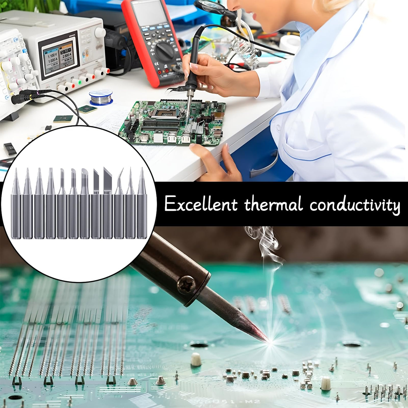 • Excellent thermal conductivity: soldering tip made of lead-free material, a sustainable choice. The good thermal conductivity ensures fast heat transfer and smooth soldering, extends the life of the soldering tip and optimises performance.