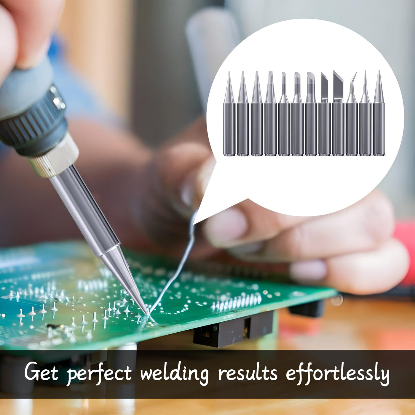 • Easy to use: soldering iron tip. The head is easy to disassemble and replace, the surface is polished and easy to clean, suitable for welding and repairing small and high-precision parts. You can choose the appropriate welding head depending on the welding requirements.