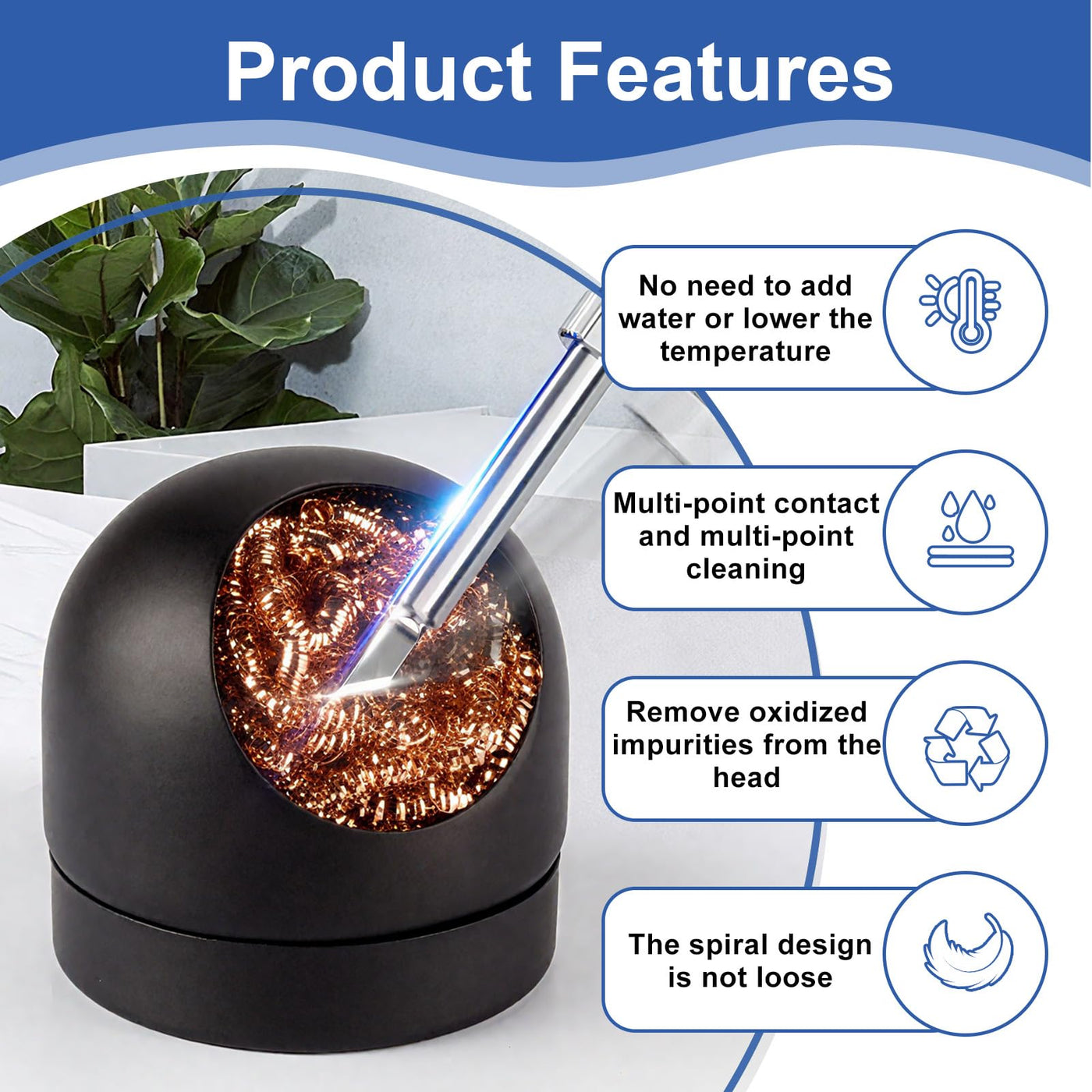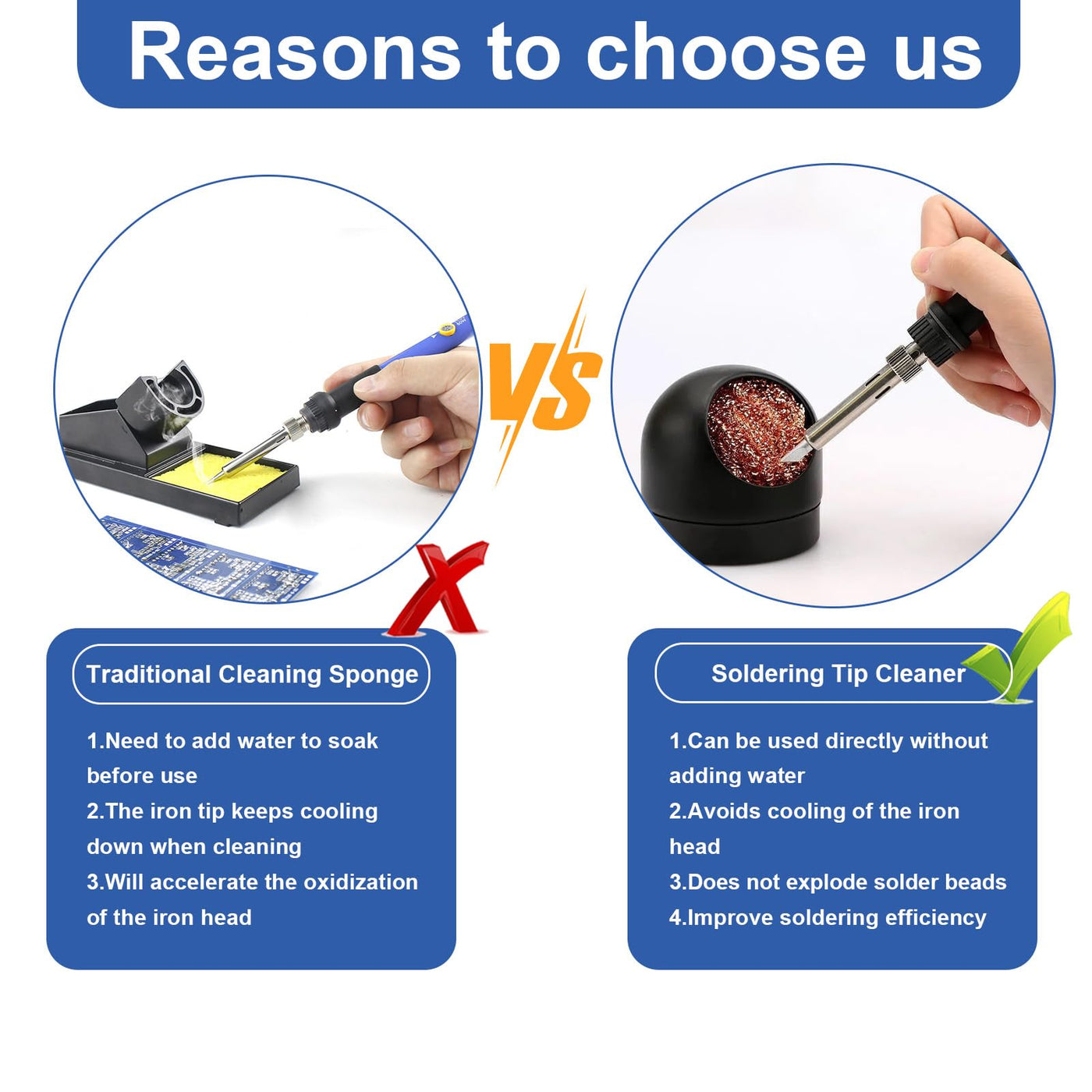 - Waterless cleaning: no watering required - cleans effectively without loss of temperature of the soldering tip. Better than sponges. Removes oxidation and soldering residues more thoroughly _x000d_
