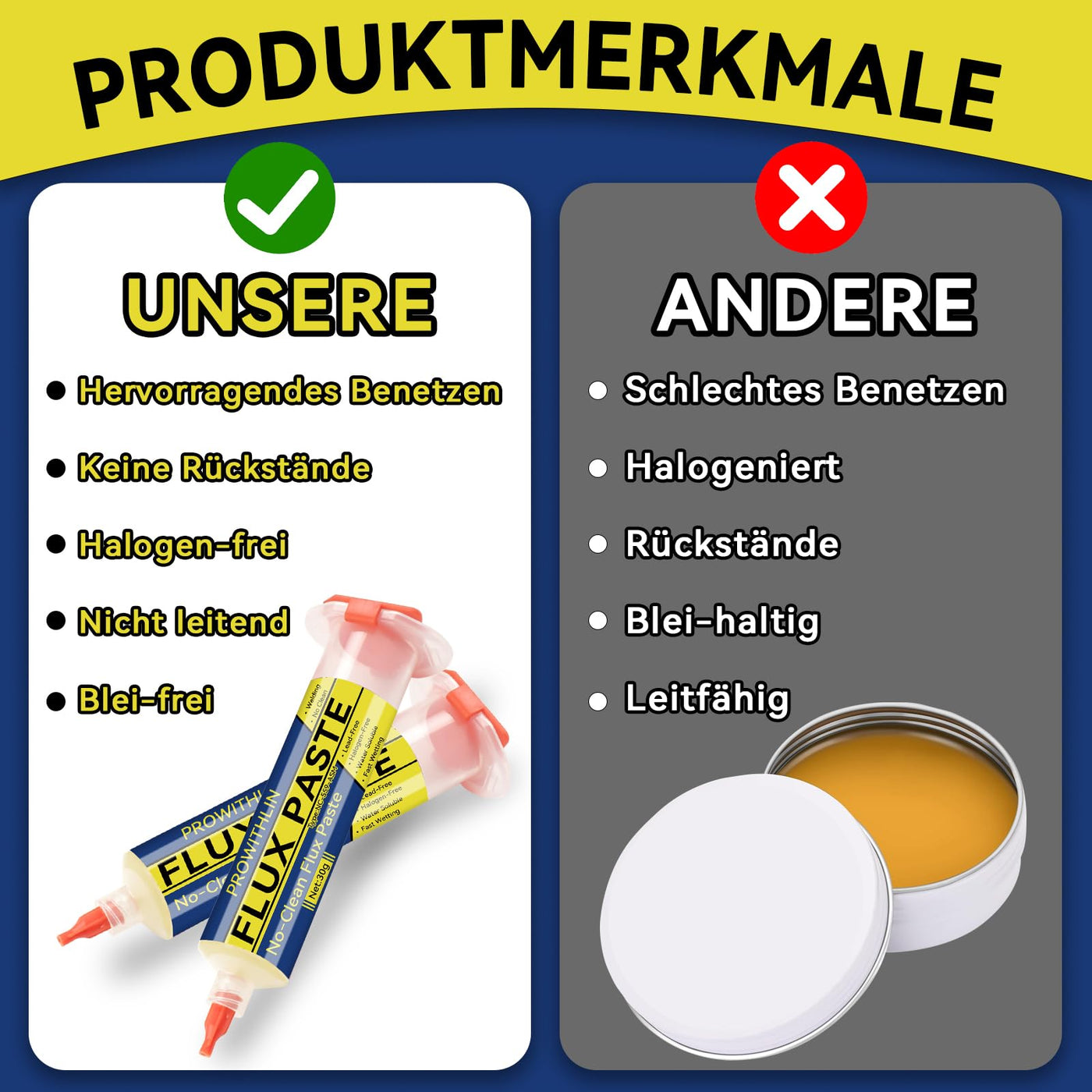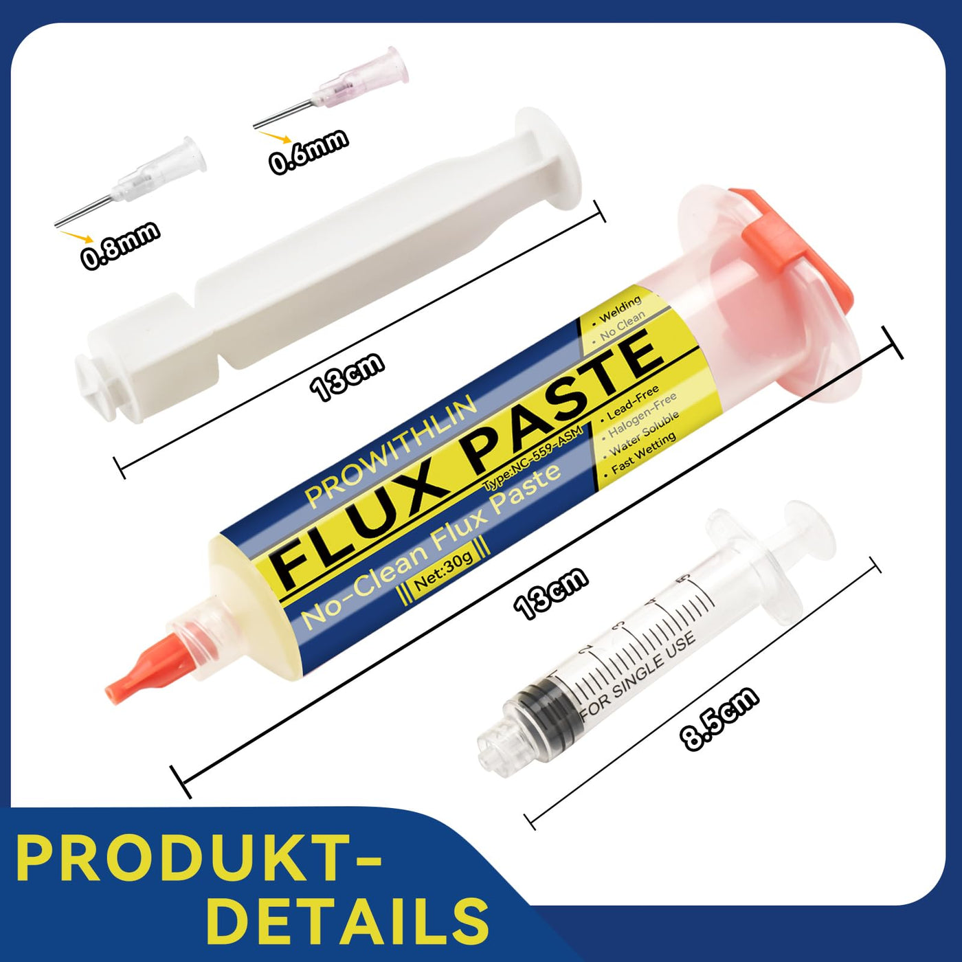 prowithlin Flux Soldering, 60 ml, Pack of 2 Soldering Paste with 2 Needles, 1 Pusher & 1 Syringe, 60 g No Clean Solder with Flux for BGA/IC/CPU/PCB/SMD