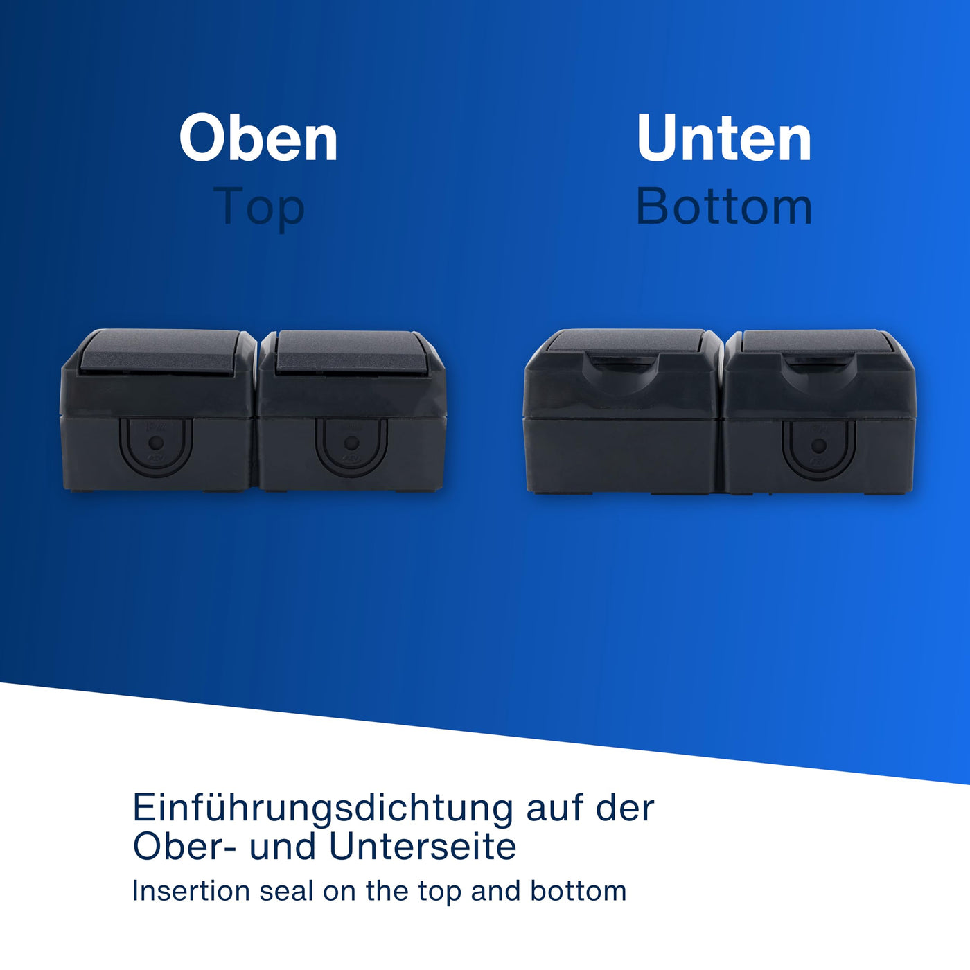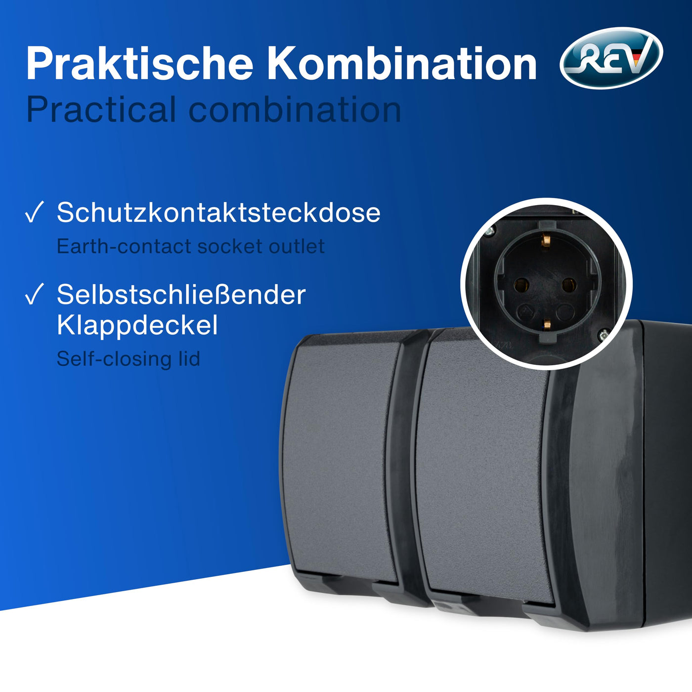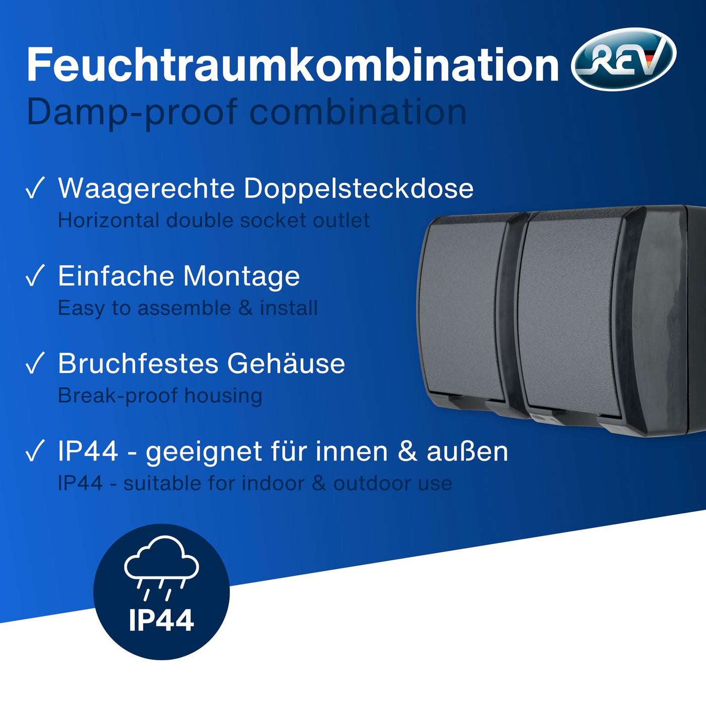REV AquaForm Double Socket Wet Room Socket IP44 Surface-Mounted Anthracite 1 x horizontal double socket
