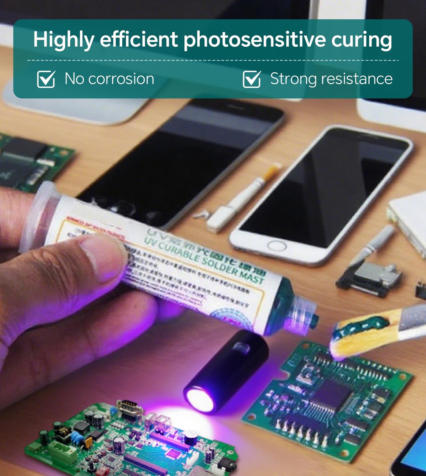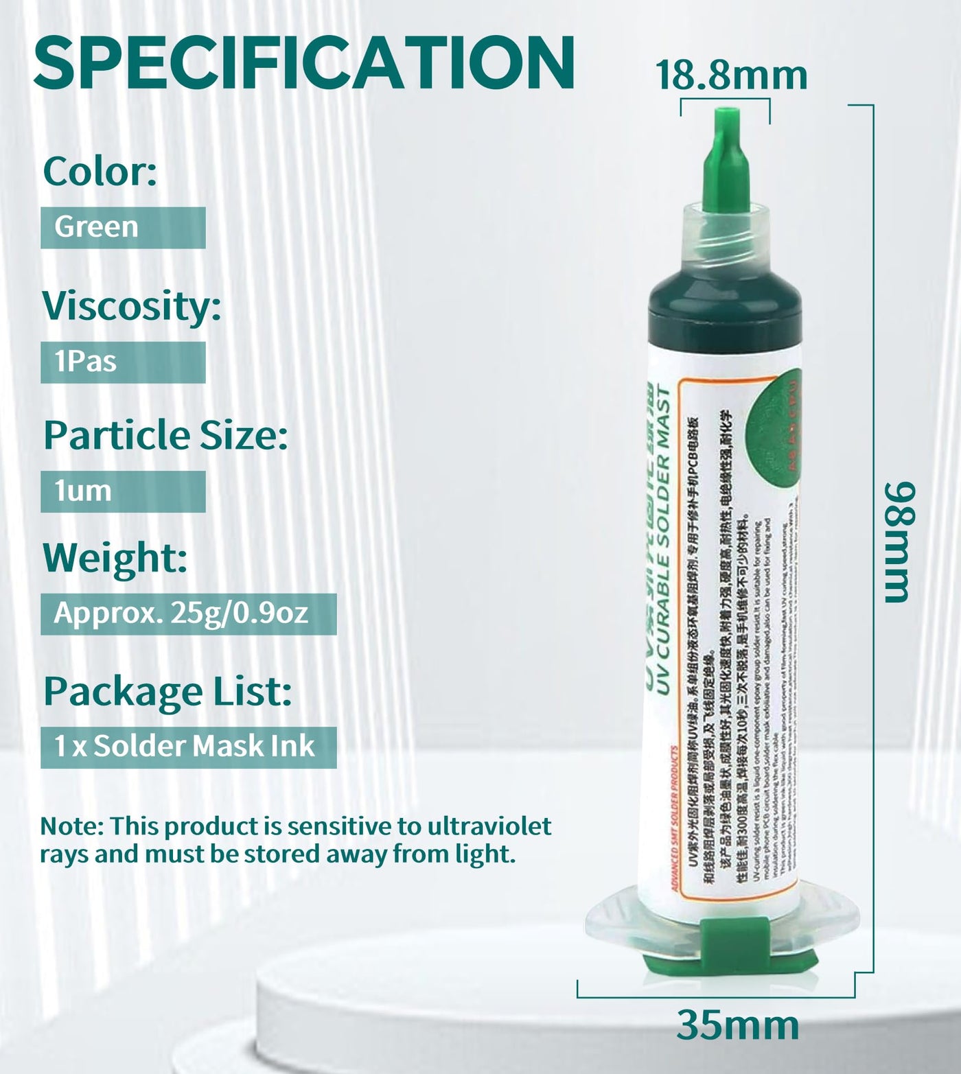 Solder Mask Ink, 1 Piece UV Light Curing Solder Mask Ink, BGA PCB Solder Resist Ink, UV Curing Solder Resist Combination for Insulating and Protecting Electronic PCB Components