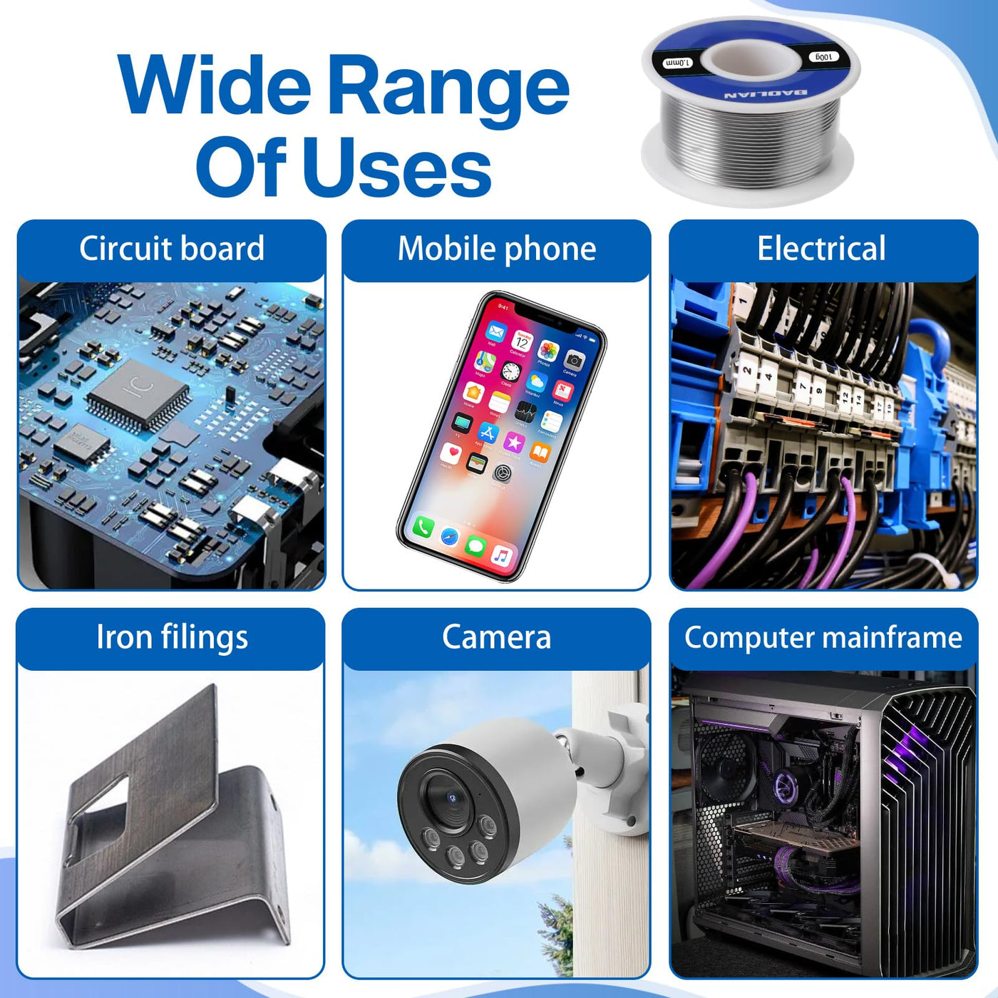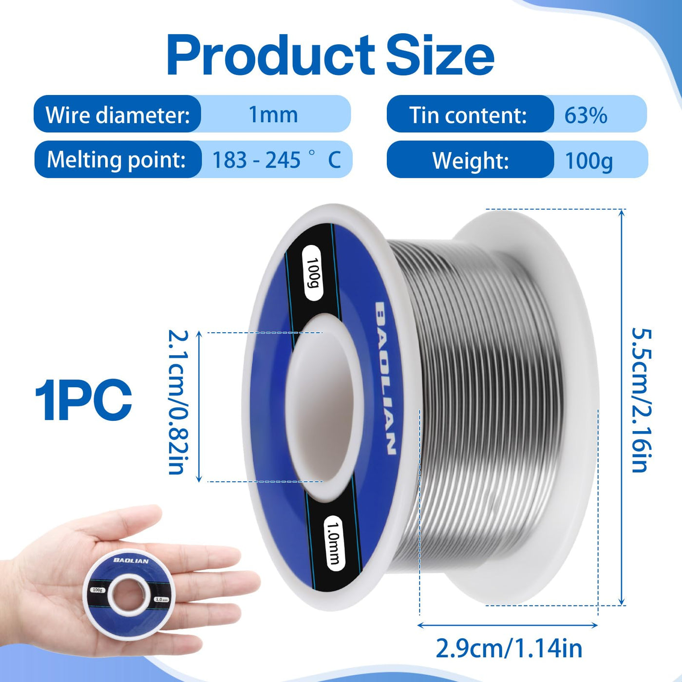 - Optimal size for precision and versatility: with a diameter of 1 mm and a weight of 100 g, our 1 mm solder offers ideal dimensions for precise work. It fits perfectly in tool boxes and is particularly suitable for fine soldering work on circuit boards, components and cable connections _x000d_