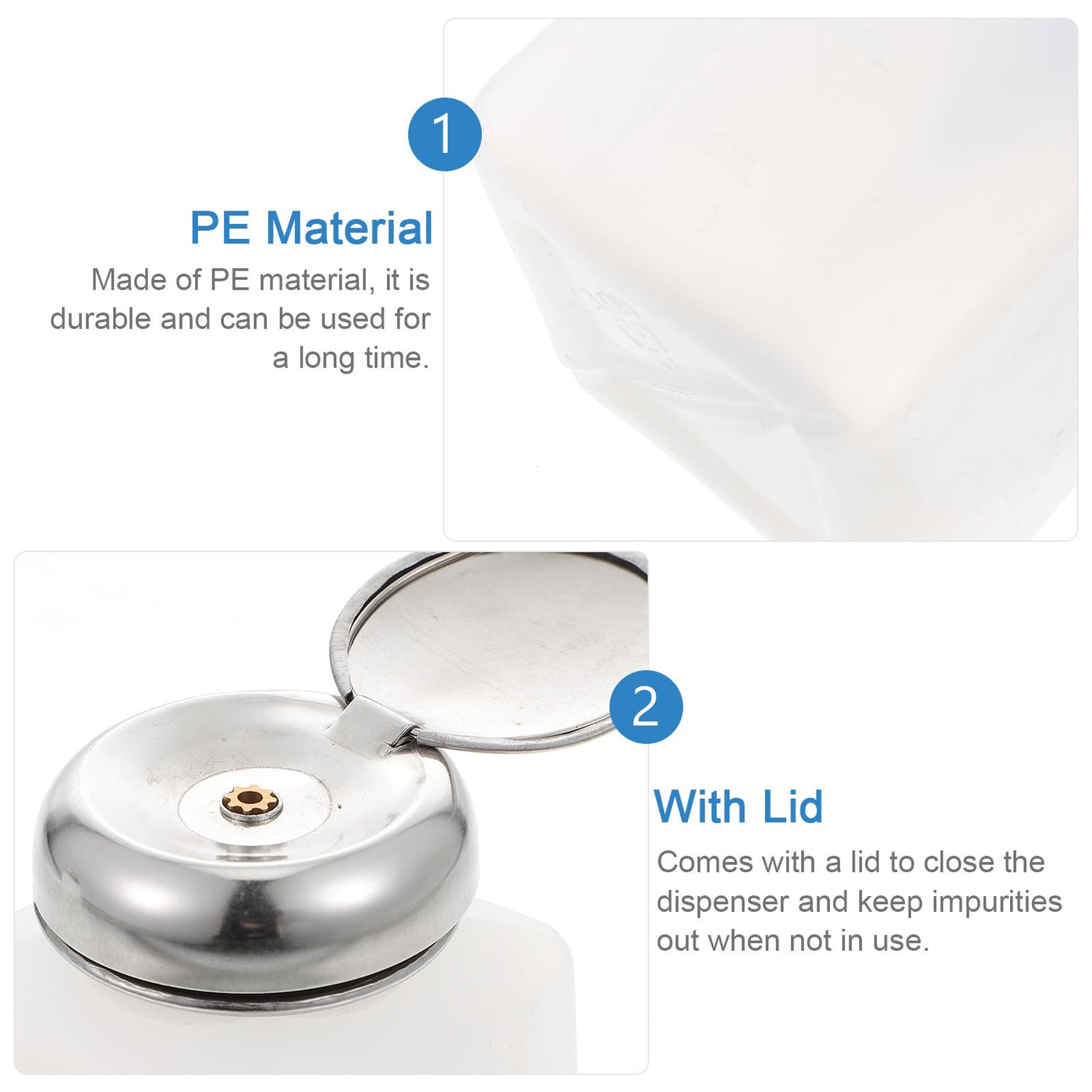 _x000d_Description: This is an empty 100ml bottle. It has been specially designed to_x000d_ prevent fluid backflow. Stainless steel top which is very easy to wipe and_x000d_ keep clean and is also a cover to close the dispenser which protects against_x000d_ contamination when not in use. Suitable for storing alcohol, chemistry,_x000d_ medicine, industry, cleaning, nail art, make-up and so on. Features: - Color:_x000d_ orange + white - Material: PE - Size: 5 x 5 x 8 cm. - Capacity: 100 ml. -_x000d_ Anti-static and moisture-independent. - Special design to avoid liquid reflux,_x000d_ non-volatile and non-polluting, recyclable. - Use of dispenser bottle with_x000d_ pump in electronics laboratory for acetone, isopropyl alcohol, flux, hydrogen_x000d_ peroxide and more. Or for women astringent, make-up remover and nail polish_x000d_ remover. - Stainless steel top which is very easy to clean and keep clean and_x000d_ also a cover to close the dispenser which protects against contamination when_x000d_ not in use. - Perfect tools for nail treatment and makeup, easy to use and_x000d_ store. Box contents: 2 x Dispenser Bottle