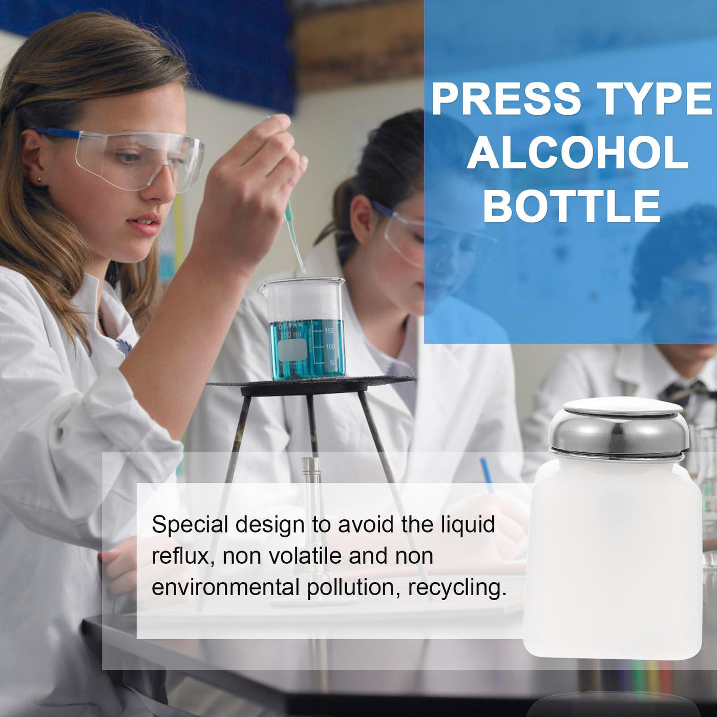 ULTECHNOVO 2 Pack Push Down Alcohol Dispenser Empty Lockable Antistatic Pump Bottles Square Plastic Bottles White 100ml 100 ml
