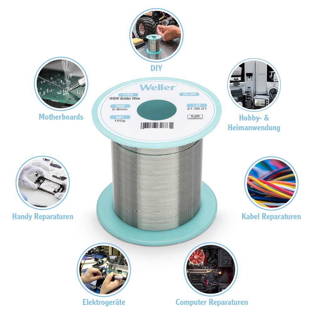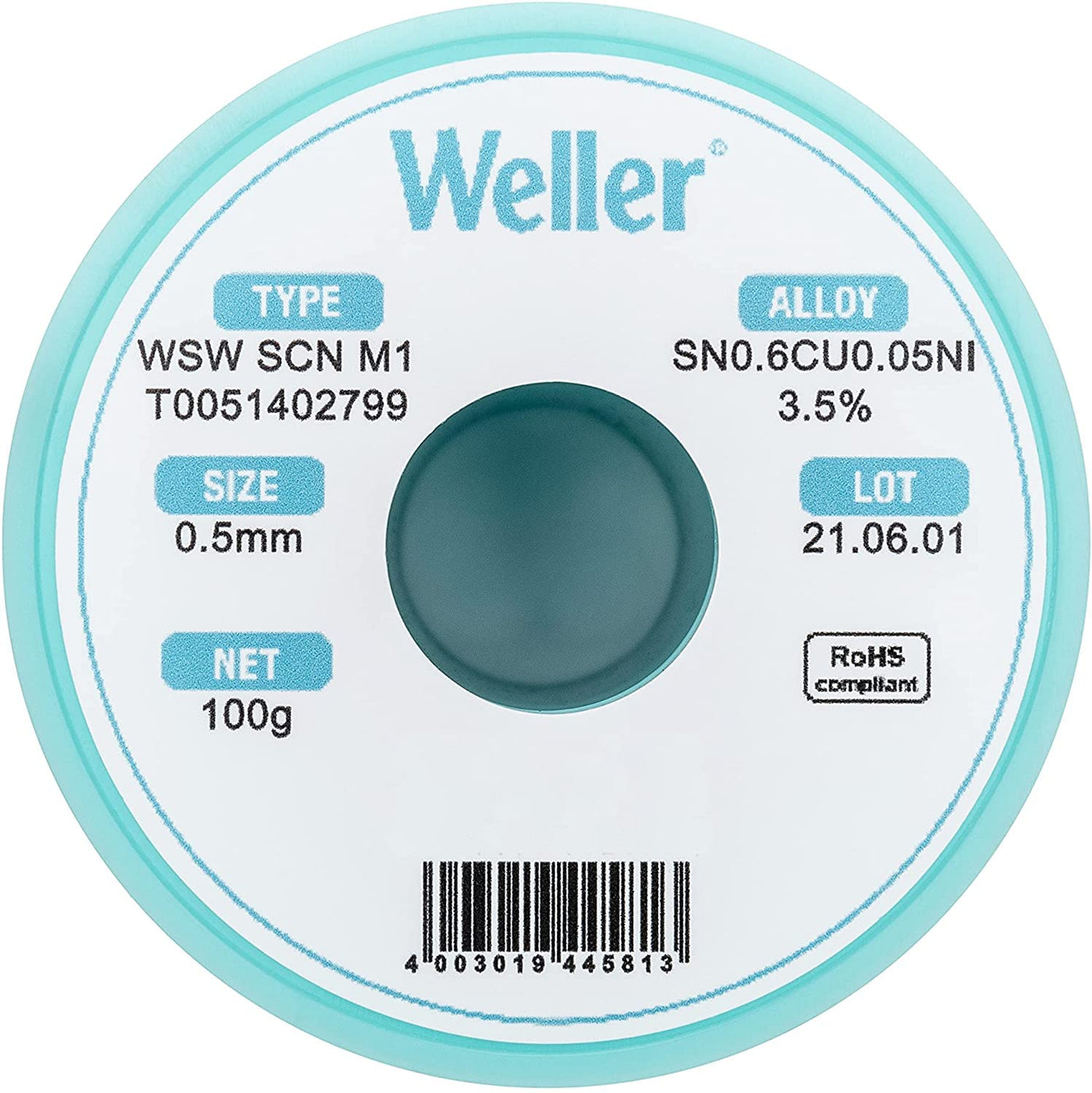 Weller WSW SCN M1 (T0051402799) 0.5mm Lead Free Solder Wire Alloy Sn99.3Cu0.6Ni0.05 Flux Content 3.5% 100g Silver
