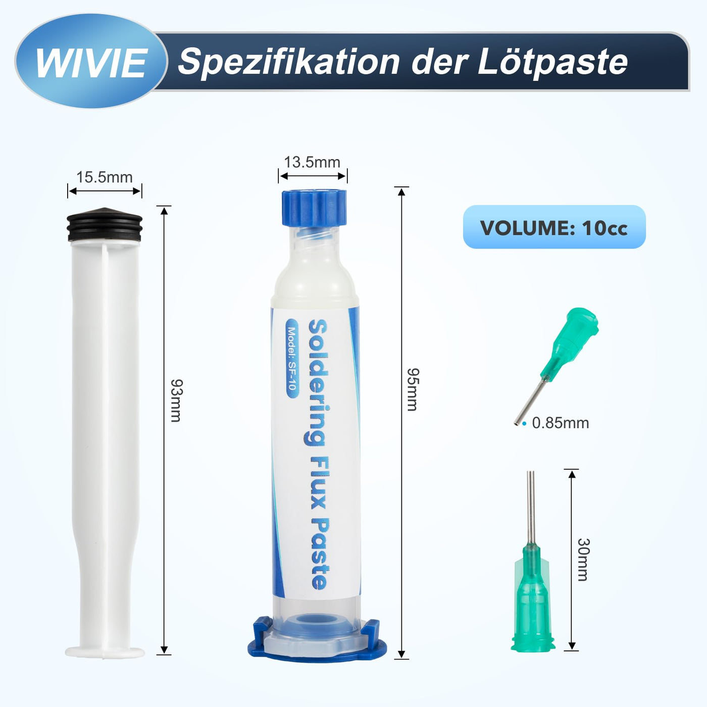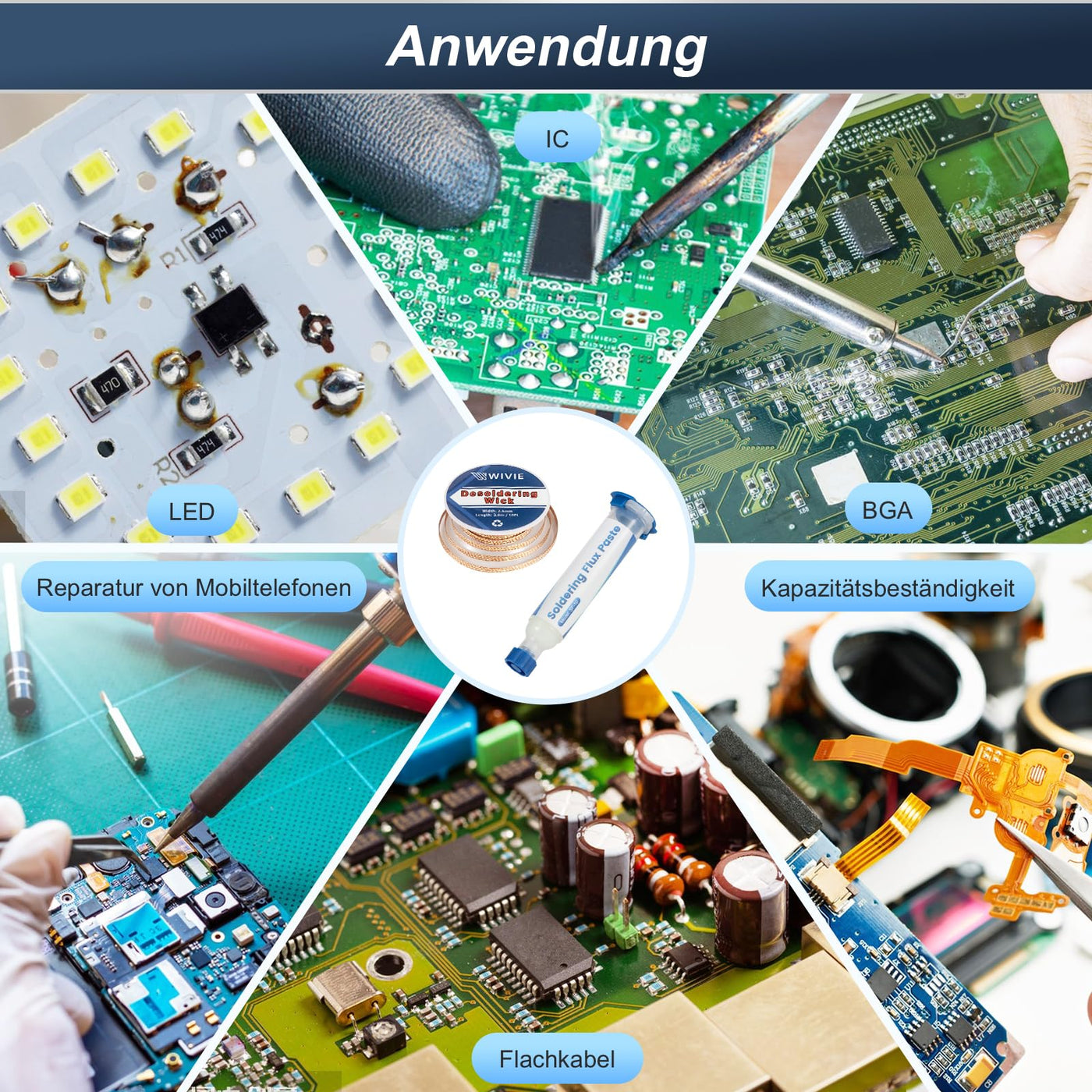 WIVIE Lead-free no-clean solder paste flux (3 packs) & 2.5 mm soldering desoldering wire, 3 m / 10 ft desoldering wire, pure copper desoldering wire for soldering removal (2 pieces) 3 Solder Paste and 2 Desoldering Wires