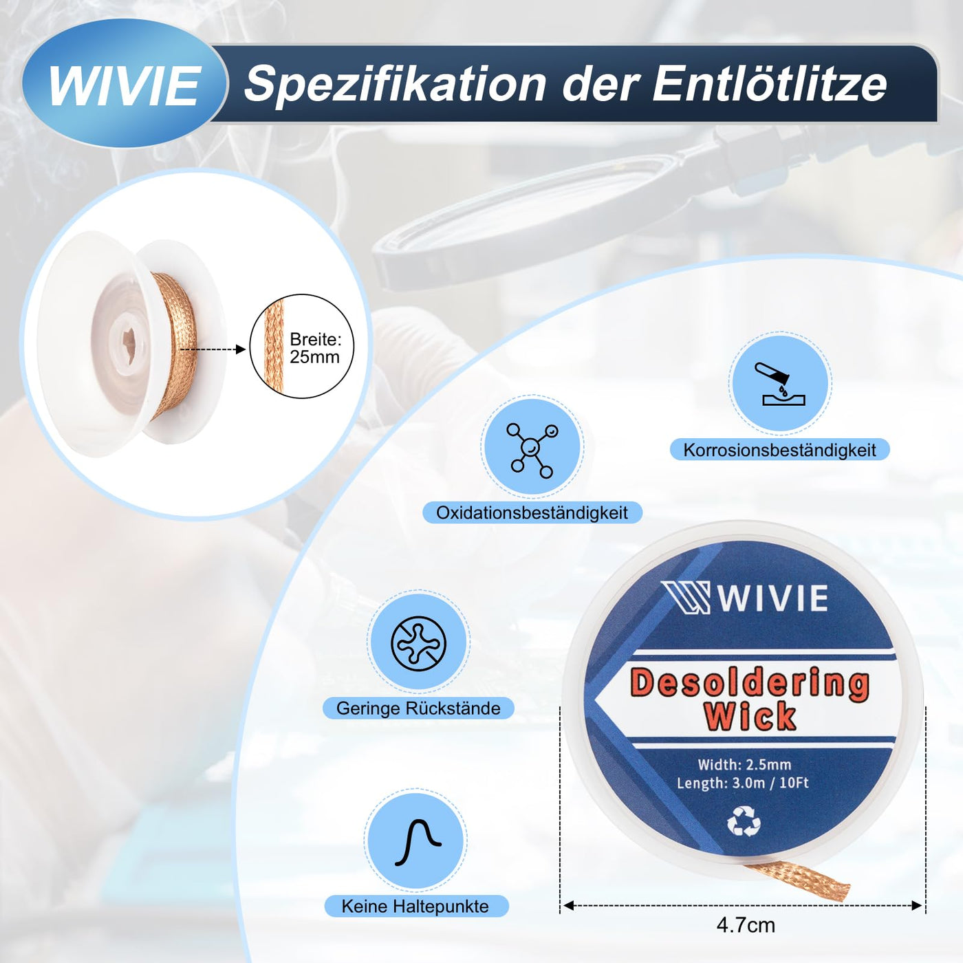 WIVIE Lead-free no-clean solder paste flux (3 packs) & 2.5 mm soldering desoldering wire, 3 m / 10 ft desoldering wire, pure copper desoldering wire for soldering removal (2 pieces)