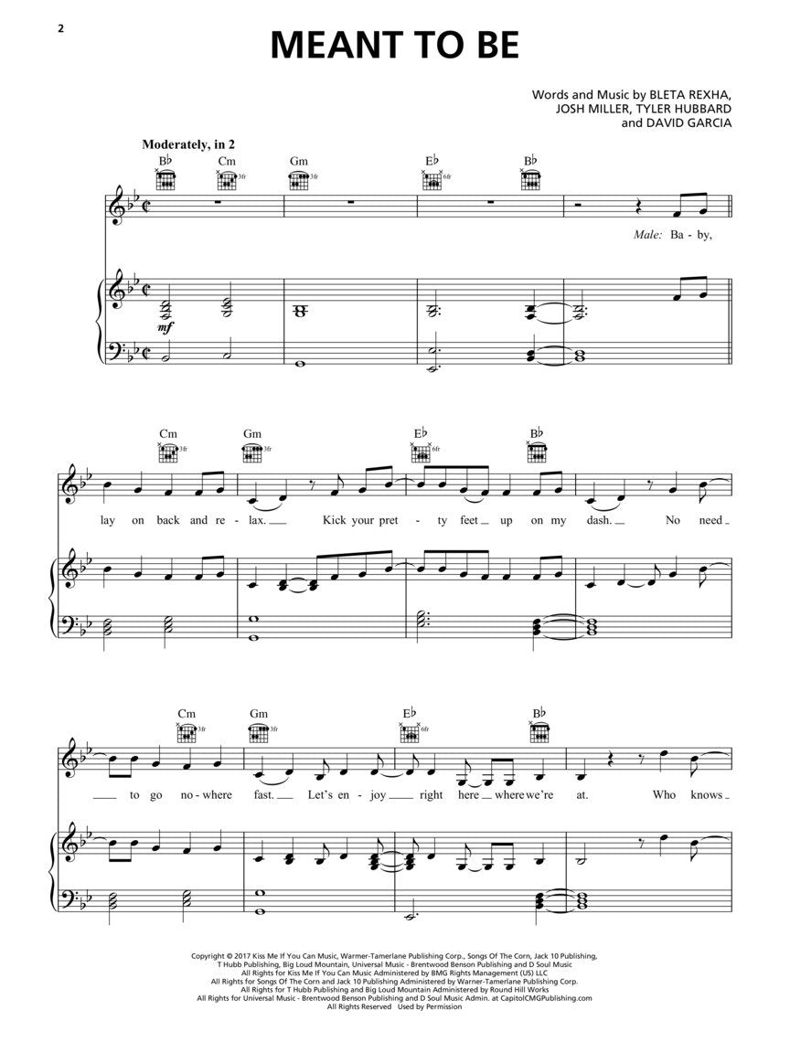 Bebe Rexba & Florida Georgia Line - Meant To Be - Sheet Music Single