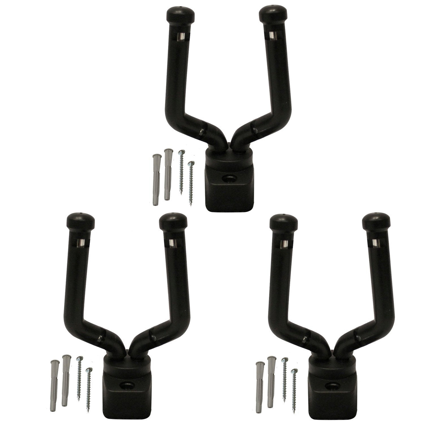 Size:3 Pack Are you tired of tripping over your guitar collection every time you walk in your house? free up some space and attach your prized possessions to your wall with confidence. The Chroma Cast wall hanger have arms made of heavy duty steel and is complimented with an exterior gentle rubber coating that won't damage finishes, giving you strength and tenderness in one. With adjustable arms, it also keeps your guitar snug using its own weight while being able to adjust to any neck or headstock size. Great for guitars and ukuleles.