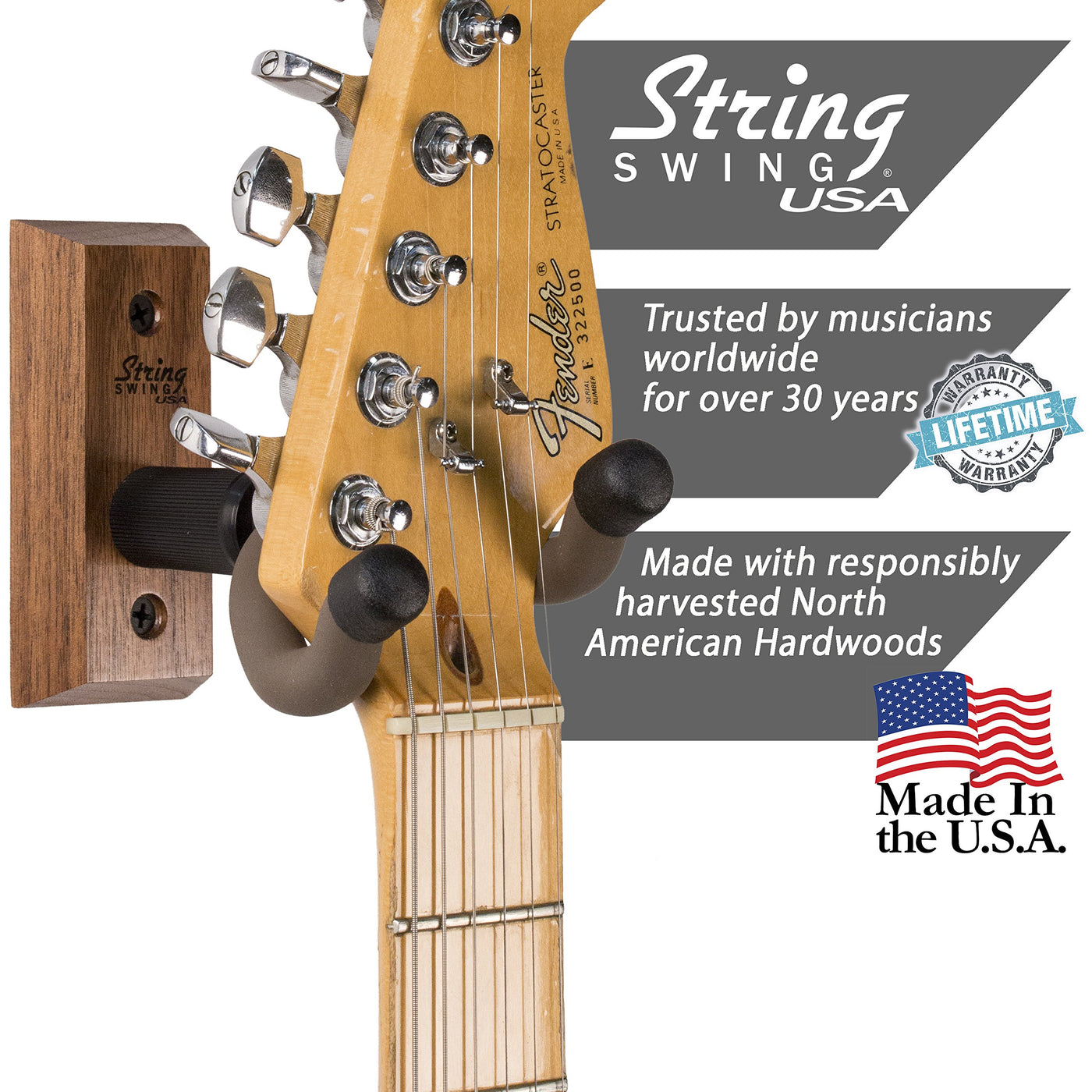 - LIFETIME STRUCTURAL WARRANTY - The STRING SWING GUITAR HANGERS are CERTIFIED 100% MADE IN USA with REAL AMERICAN HARDWOOD and backed by a LIFETIME STRUCTURAL WARRANTY and Add yours to cart Now and keep your guitar safely stored while supplies last!