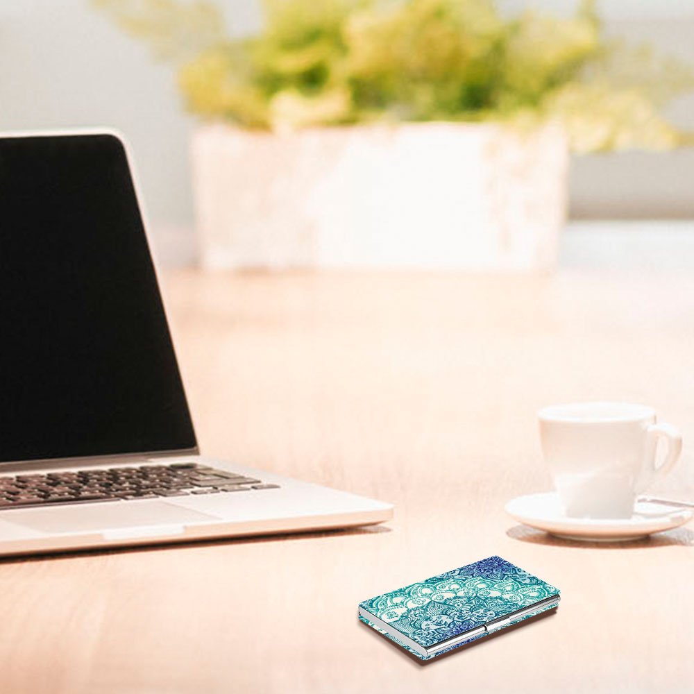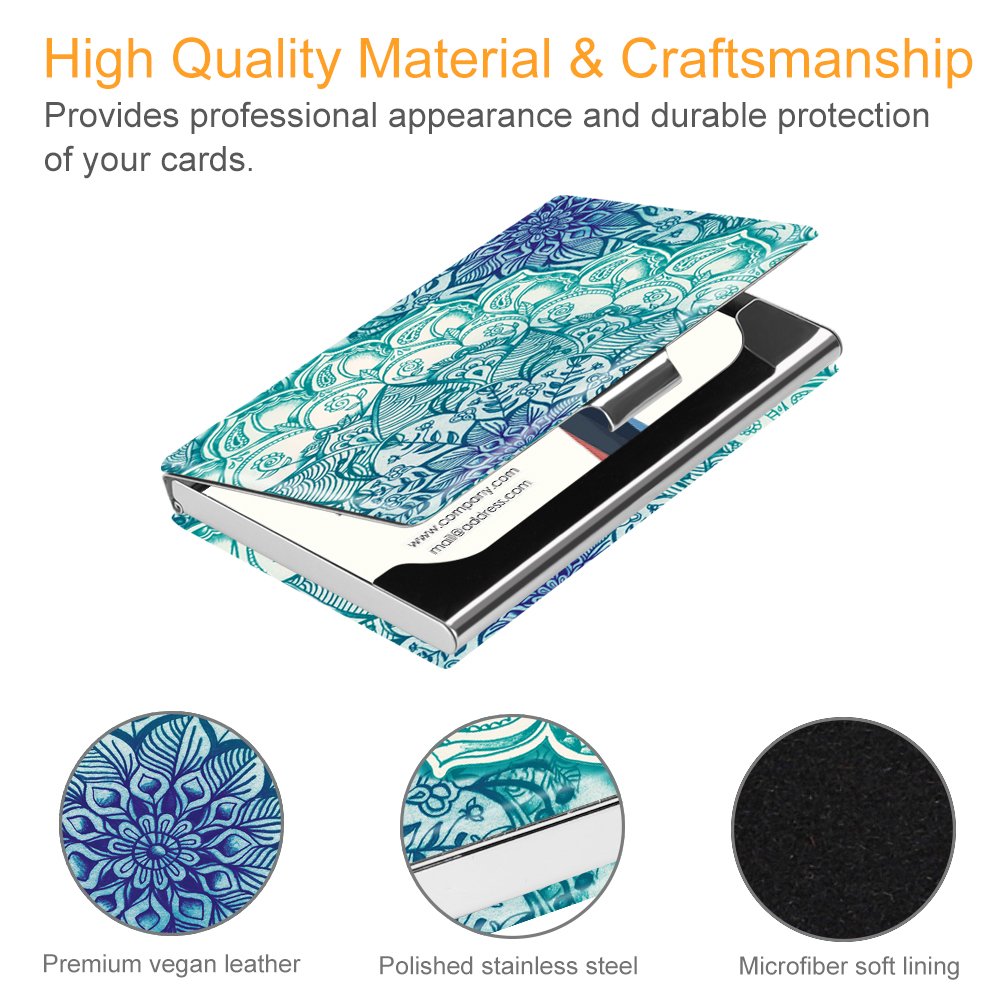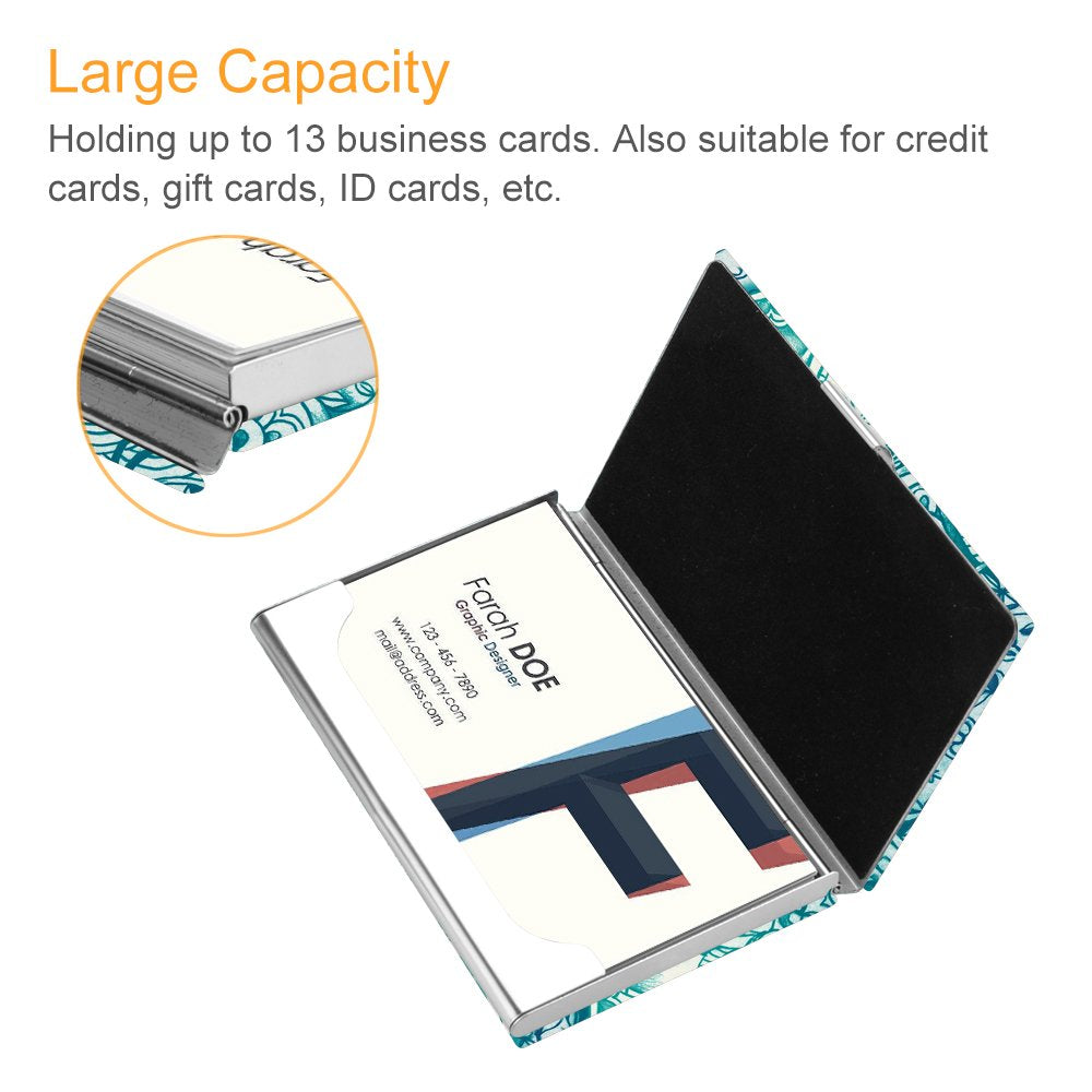 Business Card Holder, Fintie Premium Vegan Leather Coated Stainless Steel Professional Slim Name Card Case Organizer for Men & Women, Emerald Illusions