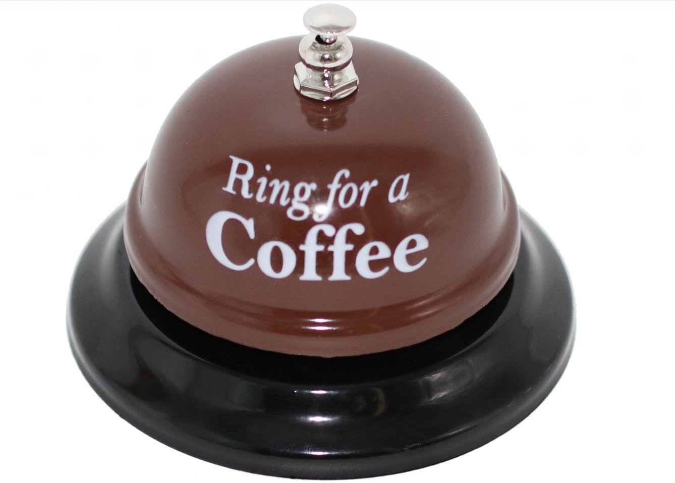 - "Ring for a Coffee" printed on the bell will make it and excellent Lighthearted addition to a Party or Coffee shop
